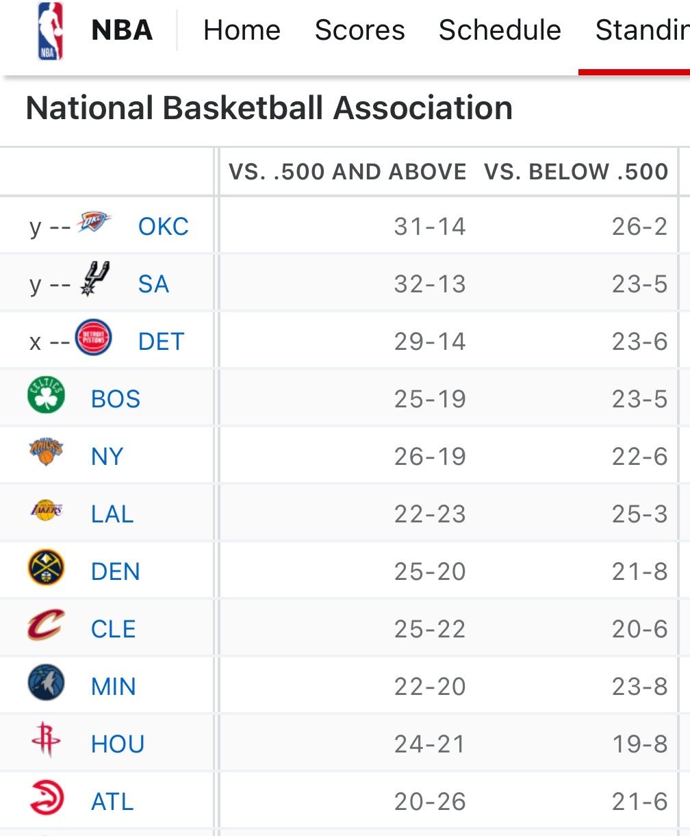 湖人本赛季面对不足50%胜率的对手战绩高达25胜3负,联盟第二😱仅输过勇士、国
