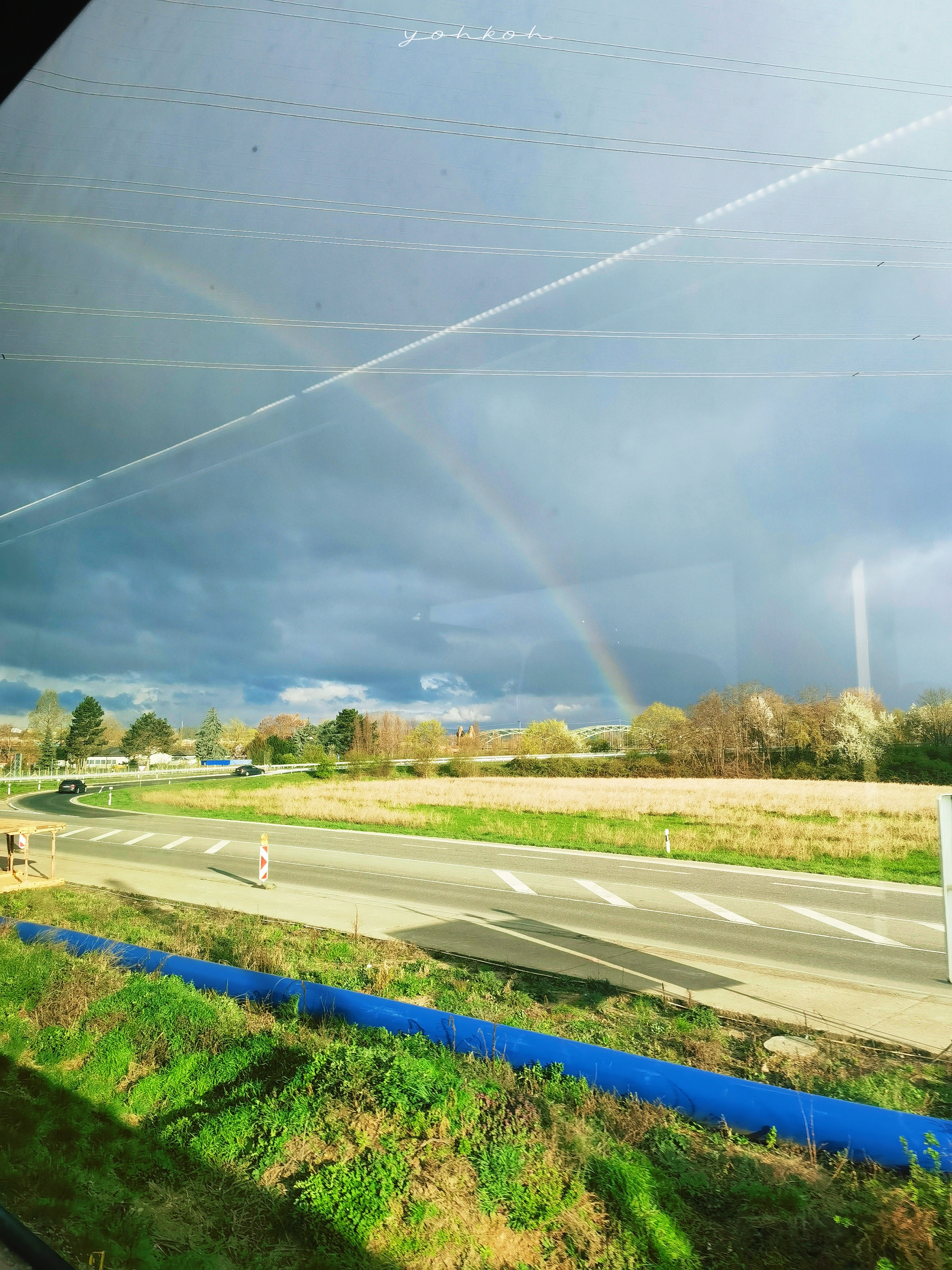 报告!再次到达萨尔分享路上的风景~虽然空气还是冷的但天气很好 风景很好一路养眼的青绿色和开得很漂亮的花还偶遇了彩虹🌈lucky~上次看到还是9月6号客场哈哈墩墩看星星 德国·萨尔布吕肯