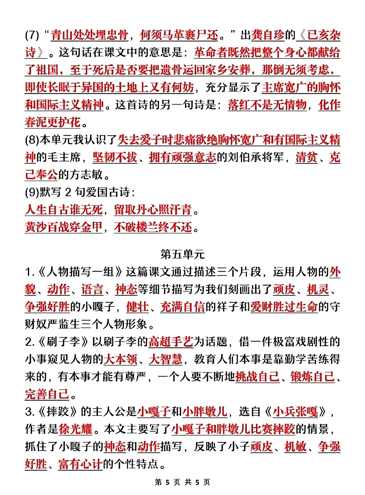 五年级下册语文:课文重点及相关拓展考察+课本重点背诵计划表,是孩子新学...