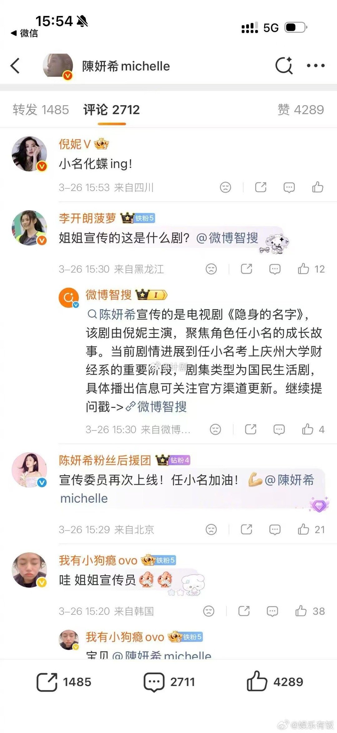 倪妮摇来了影帝影后视帝视后倪妮一声召唤,影帝影后视帝视后全来了!宋佳、殷桃、雷佳音齐齐转发,为《隐身的名字》任小名打call。这哪是宣传,这是神仙聚会的邀请函!