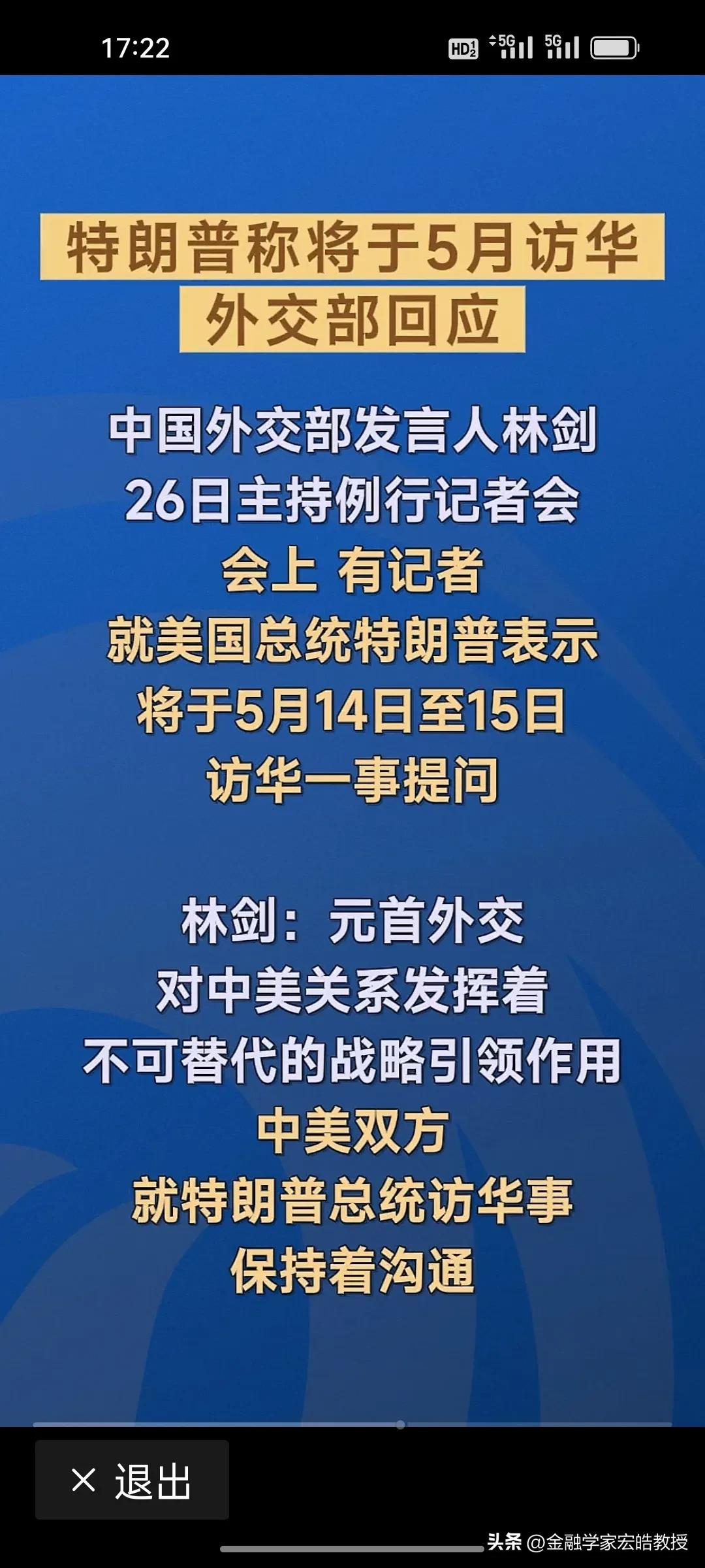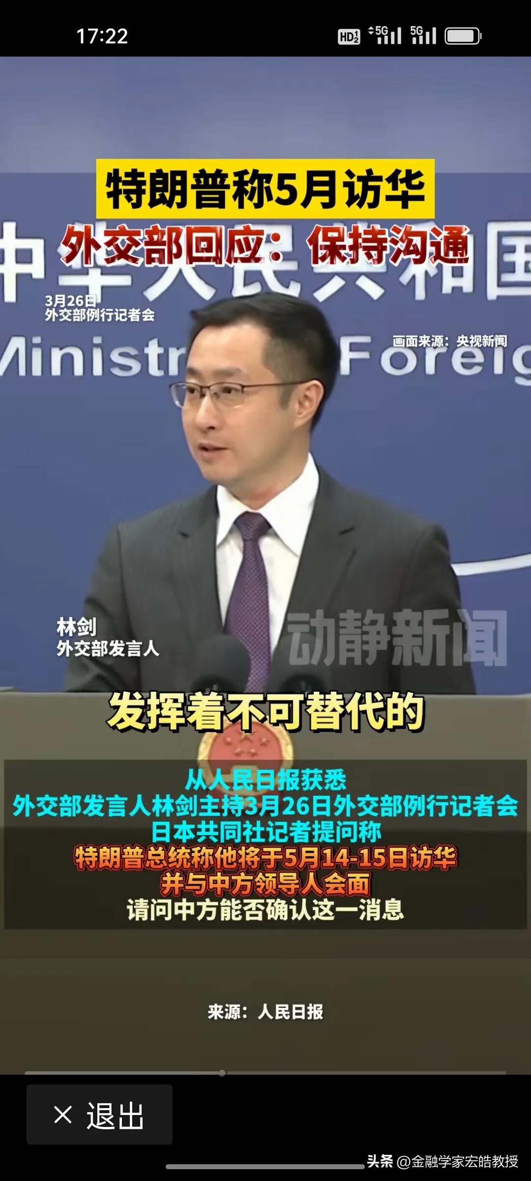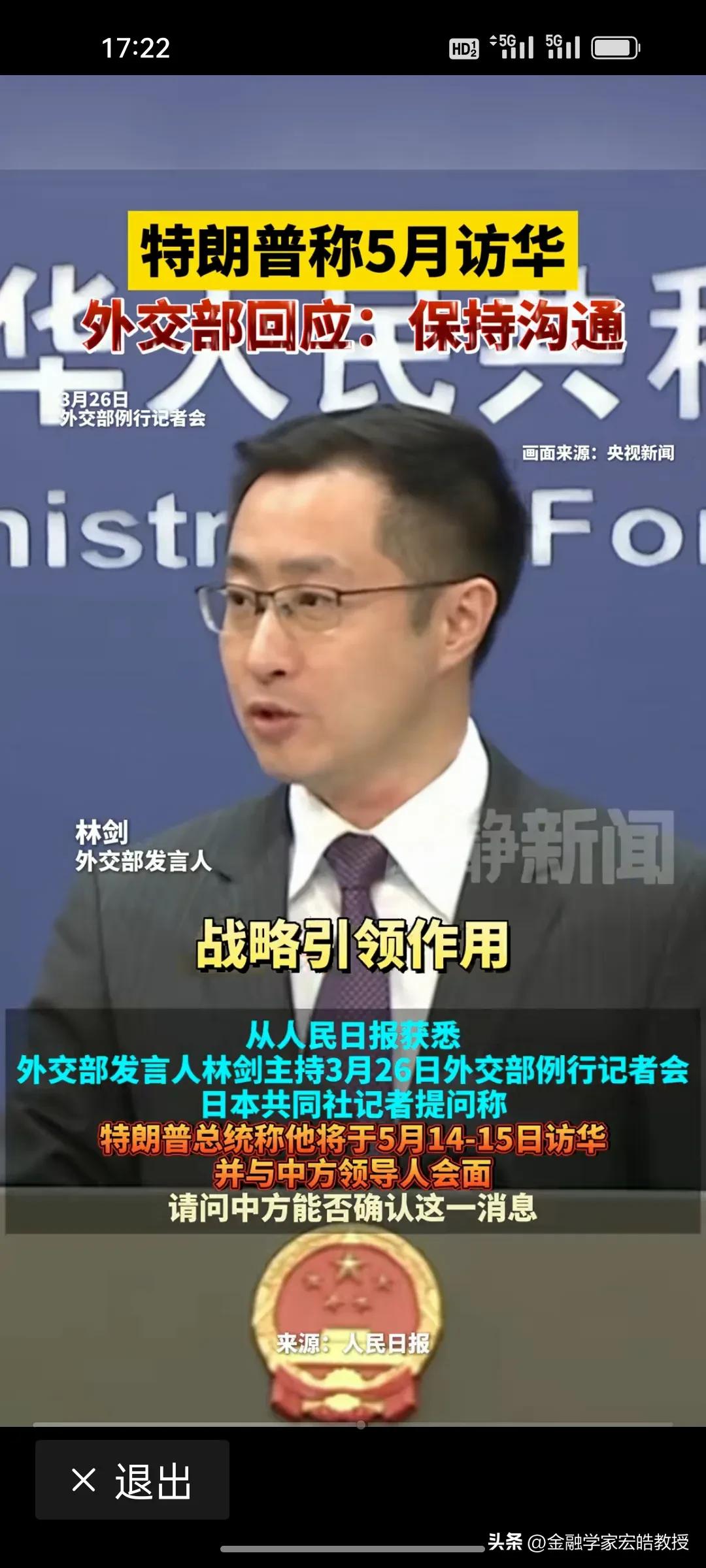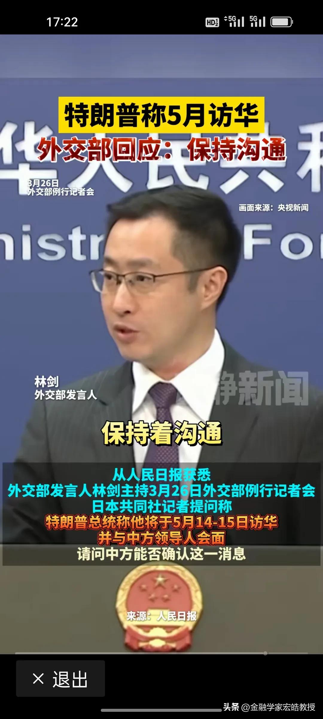 刚刚,特朗普突然宣布5月访华,这步棋背后藏着三重急迫:一是14家美企刚访华谈合作,他怕“商业红利”被对手抢走;二是中东战火拖累经济,他急于兑现“美国优先”承诺,他自己错过了3月31日,不想再错过5月14日,于是主动官宣访华日期,周一早上七点特朗普就向伊朗喊话,说要跟伊朗达成协议,并说要在本周末谈判;三是他深知,只有亲自来华,才能在关税、科技、地缘上拿到“最优解”。 外交部发言人林剑回应“保持沟通”,这四个字分量极重——它既不是“确认”,也不是“拒绝”,而是给特朗普留了一扇门,但门后是谈判桌,不是红毯。 特朗普想用“访华”当筹码,中国则用再次用“保持沟通”稳节奏。这场博弈,显然特朗普更着急。