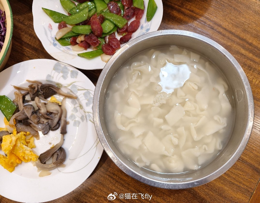 吃一口娃自己擀的面煮的面条去健身房打卡去…………小猫做饭比我厉害点