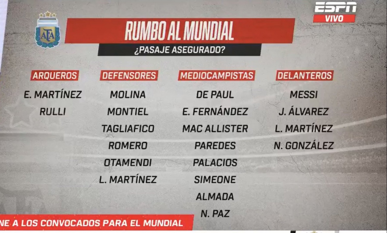 直播吧03月26日讯据ESPN阿根廷版报道,阿根廷世界杯名单中已有20名球员锁定席位,剩余的6个名额将由16名球员争夺。