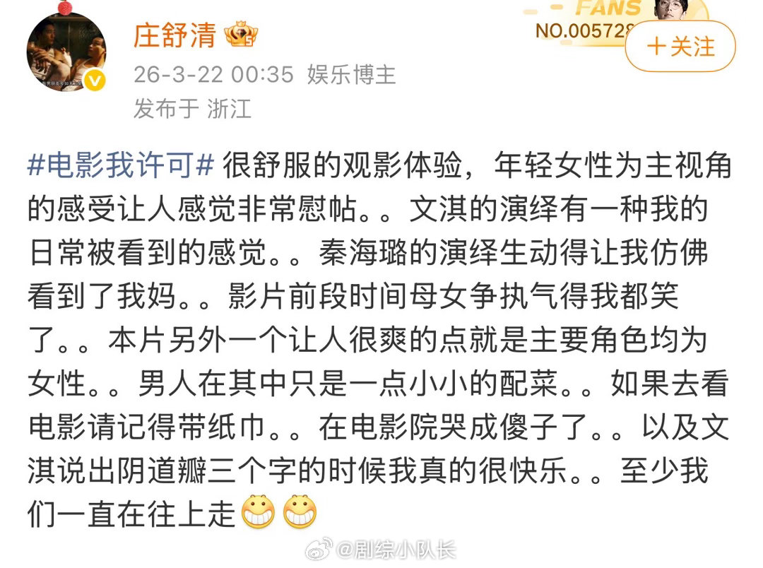 庞博评秦海璐新片 庞博看完《我,许可》直接盖章:这就是喜剧最好的表达方式。能把真