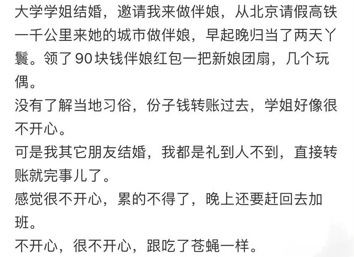 跨越一千公里去当伴娘,因为份子钱是转账被说了