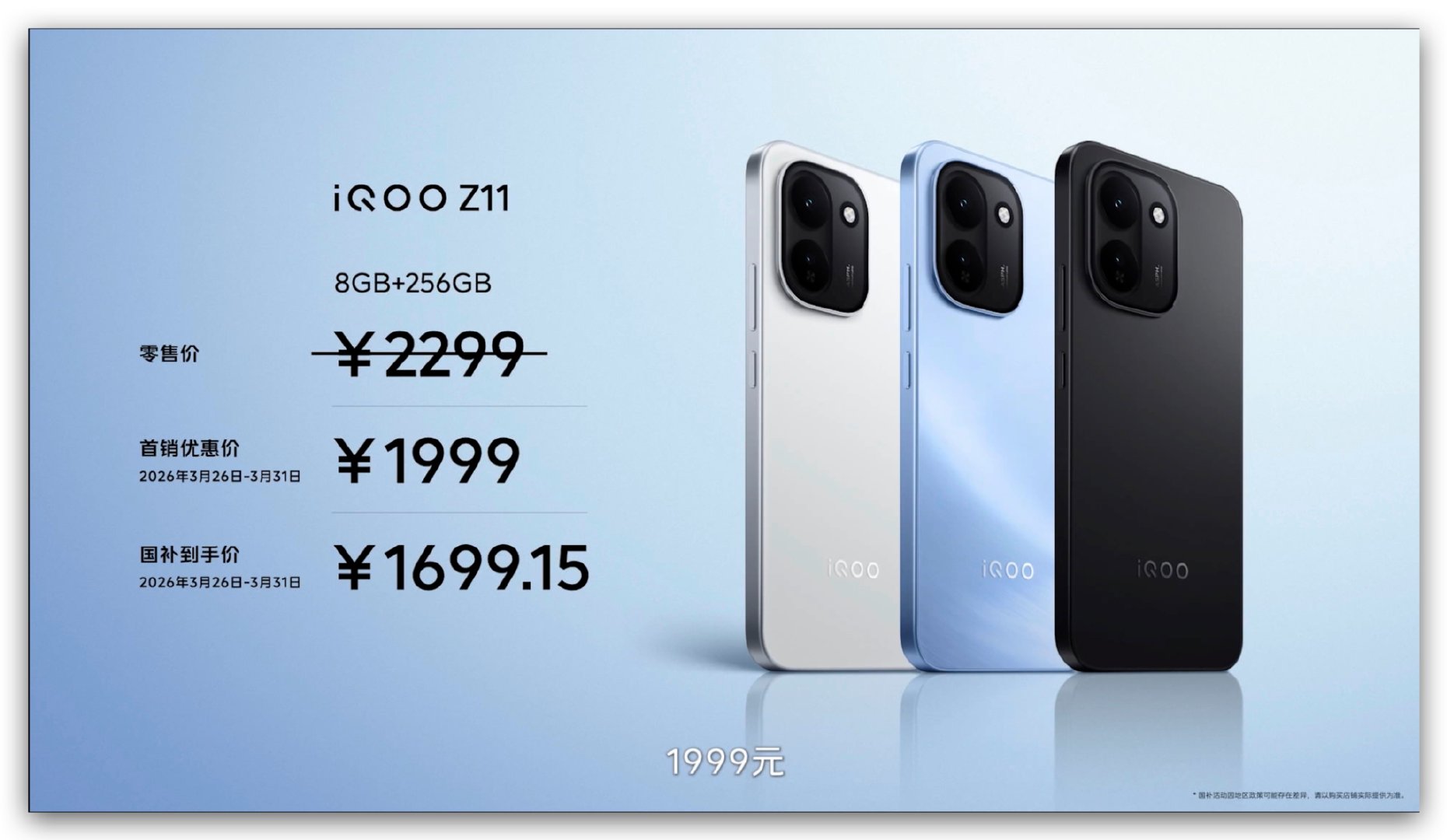 iQOO Z11 系列价格来啦:国补到手价1274.15元起