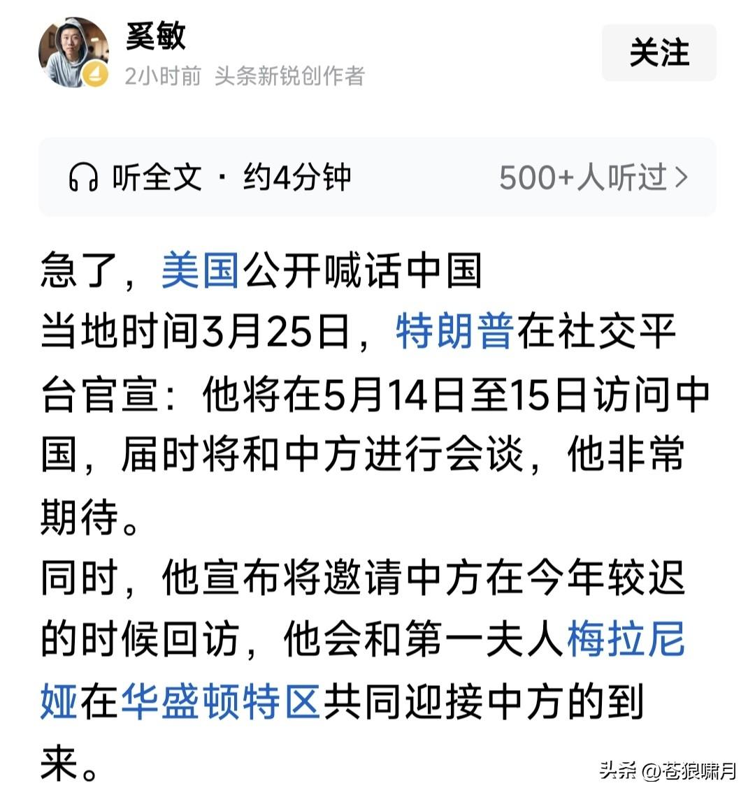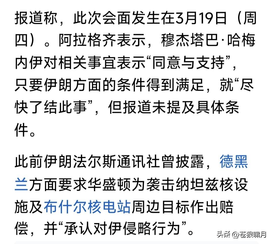 美以伊冲突迷雾重重!川普宣称:已完全打败伊朗!伊朗宣布:已摧毁所有美军中东基地,正追捕逃亡美军! 以色列媒体报道:伊朗“新领袖”穆杰塔巴已同意与美方进行谈判!尼亚胡下令猛烈轰炸伊朗,以阻止美伊谈判! 苍狼不谈美国是否已“打败”伊朗!也不说伊朗是否已“摧毁”美军中东基地!这些都是虚夸之词,完全不可信!但美伊已开始接触,这件事却是事实! 但苍狼觉得,真假仍然难辨!一是川普善于虚张声势欲盖弥彰,明修栈道暗度陈仓,突然发动致命一击!二是以色列加强了攻击,伊朗岂能不还手? 如此之下,川普只能继续往下打!而且不想陷入泥潭,只有往“狠处”打,把对方“打疼”,才有可能结束战争! 最新消息称,老特忽然告知中国:他将于5月14~15日访华!这是第二次推迟日期?当初确定访华日期是3月31~4月1日,后来说因美以伊冲突,要求推迟1个月。现在是否又推迟半个月? 现在离这个日期,还有三周时间。老特是否要在这三周之内,彻底解决美以伊冲突?应该是这样。起码是三方同意,决定都不打了,开始正式谈判。 这三周时间是关键,美国采取什么措施让伊朗服软?此前议论攻占哈尔克岛,控制霍尔木兹海峡,是最大可能。因为实现目的,即扼住伊朗的咽喉! 还有说美军要登陆伊朗本土,夺取数百公斤“浓缩铀”!相比第一个目标,这件事情危险更大,相信不会如此。 美以伊冲突何处去?这三周可能要见分晓!各方实现既定目标不容易,后退一步天地宽。为国计民生和谈吧! …………