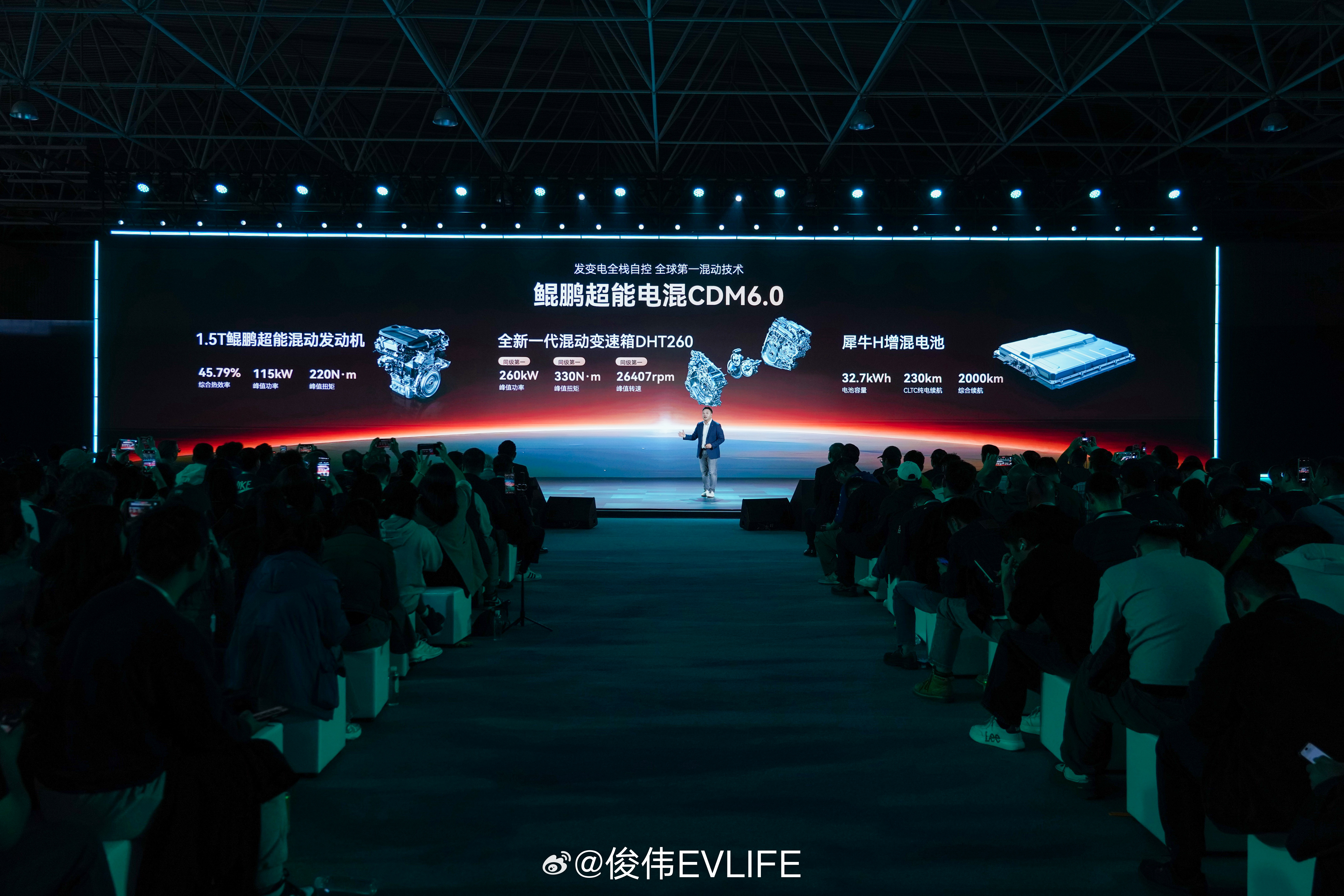 超:鲲鹏超能电混CDM6.0,综合续航2000km+,馈电油耗3.9L/100km,零百加速5秒级。1.5T发动机45.79%热效率,DHT260变速箱98.5%机械效率。6+1种全地形模式,CDC电磁悬挂,5.95m转弯半径。