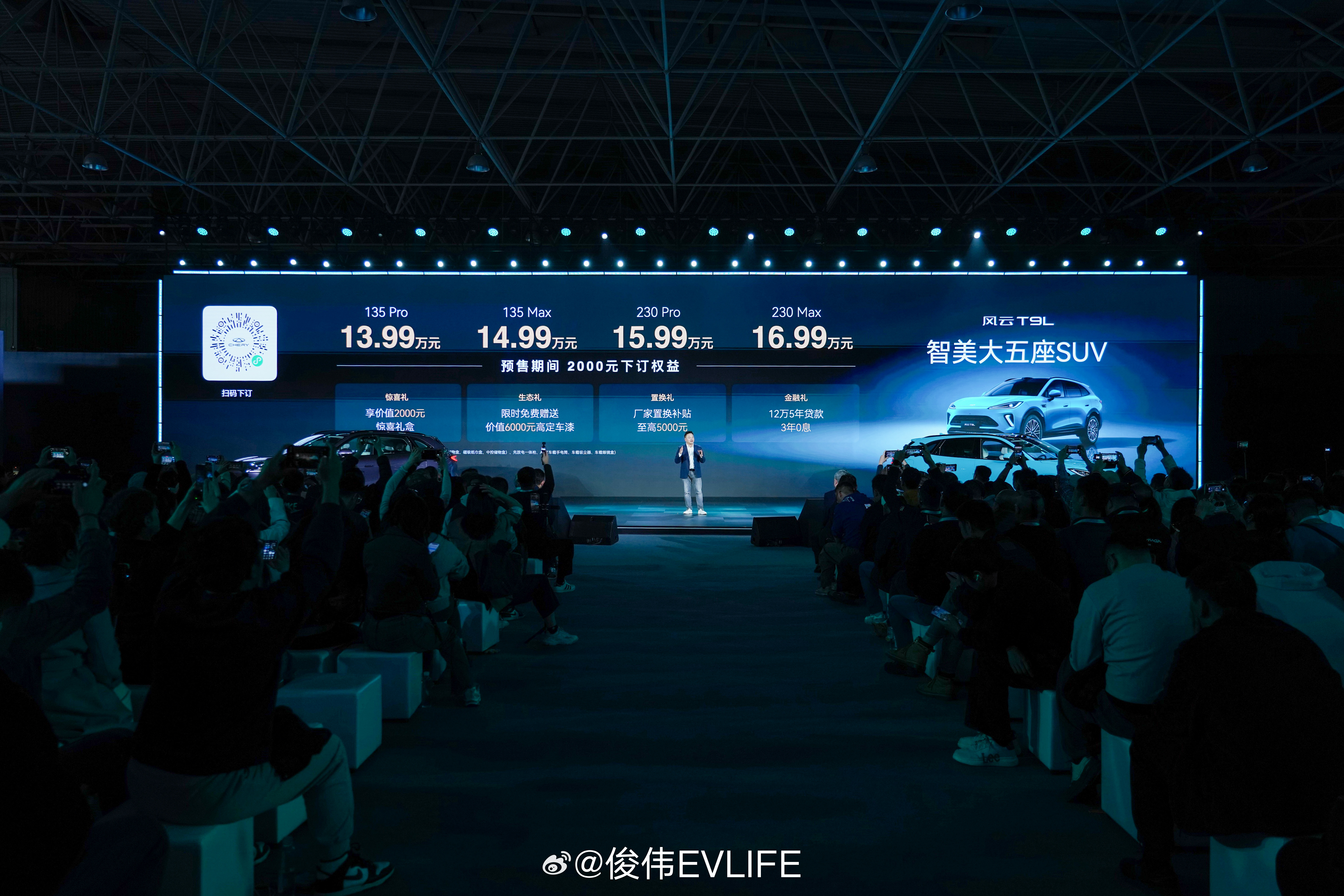 奇瑞风云之夜,T9L预售13.99万起,20万级智美大五座SUV直接开卷。