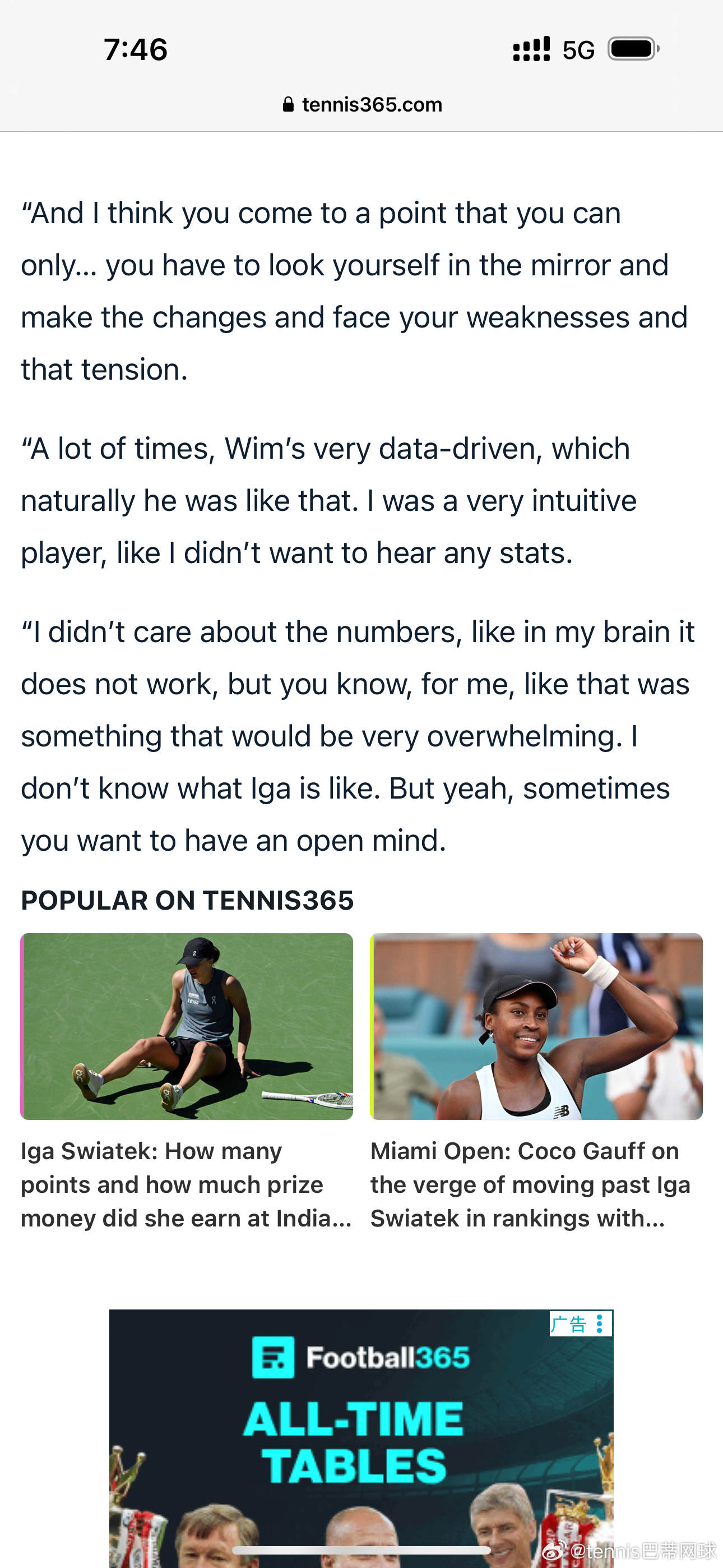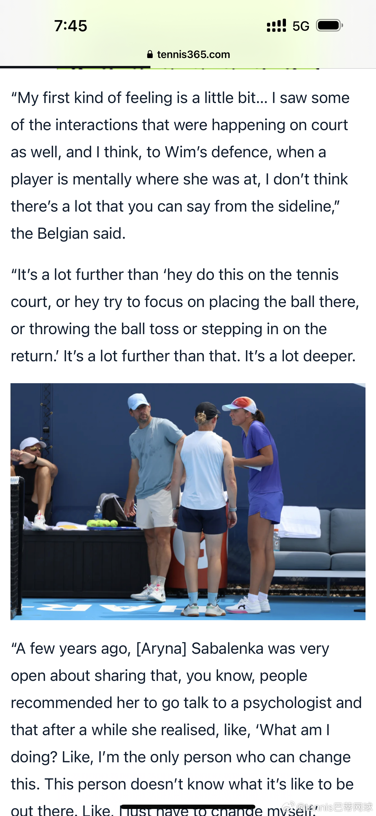 “我觉得一位优秀的教练同样需要理解心理层面的问题,懂得如何应对。这不仅仅是网球技术层面的事,也不是像拼图一样,把心理这块抽出来交给别人就能解决的。”