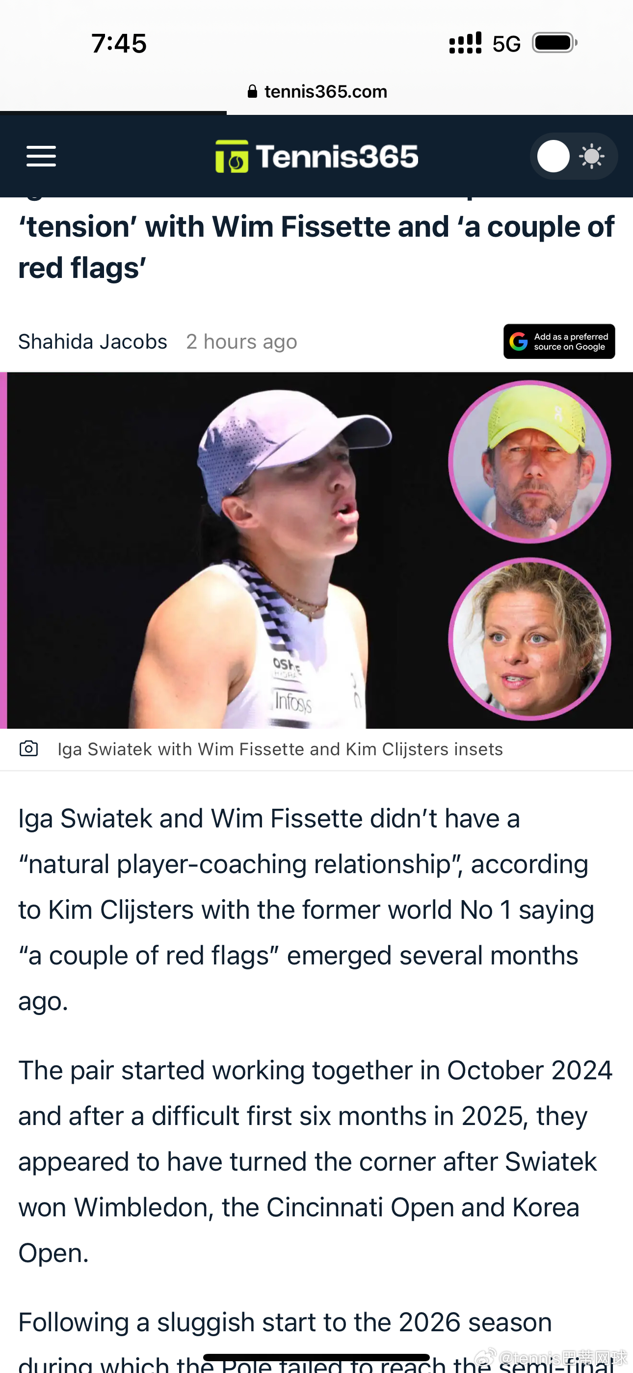 1. 关系基础不稳固:两人未形成自然的师徒关系,数月前就出现紧张、挫败感,是关系破裂的危险信号;2024年10月合作,2025年中期曾因温网夺冠好转,2026赛季低迷后正式分手。