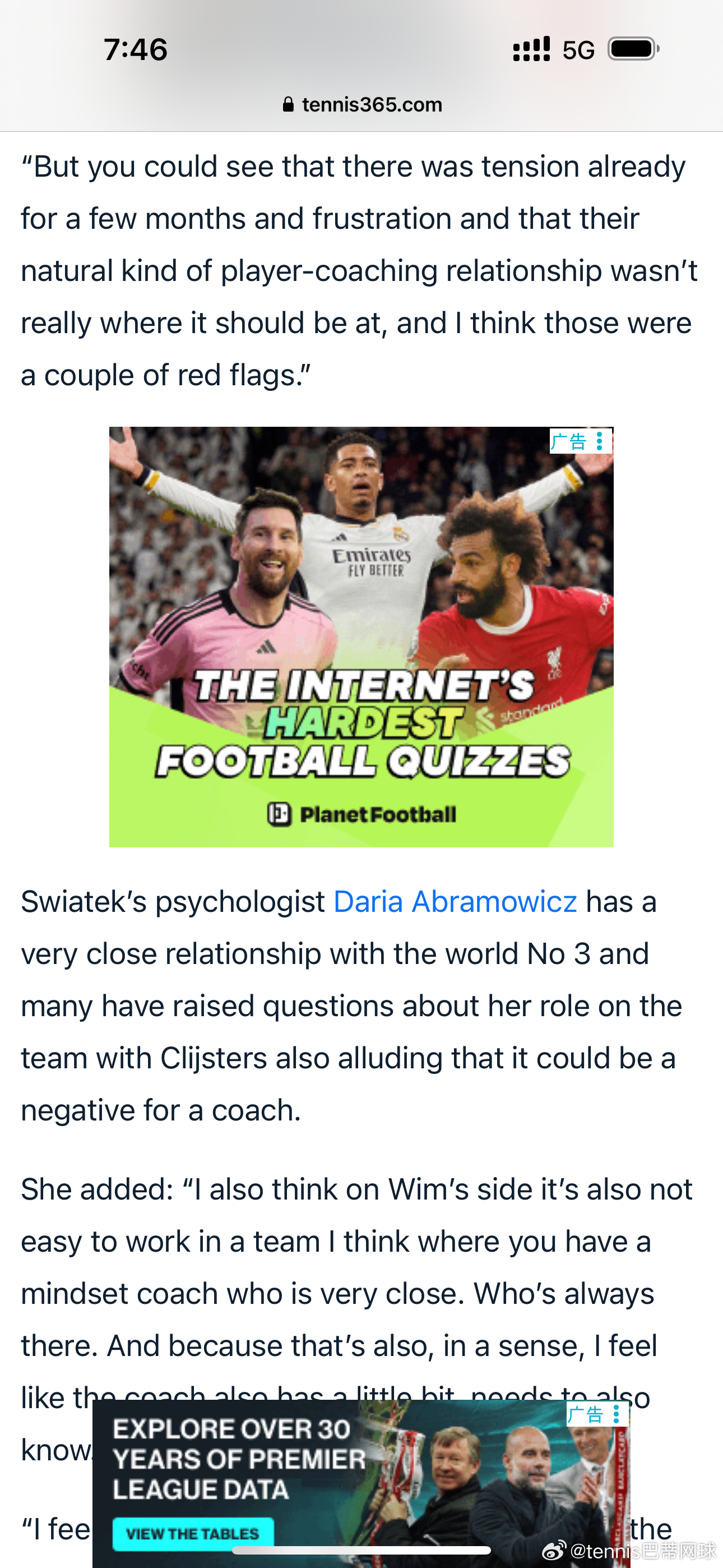 3. 心理教练的角色影响:斯瓦泰克与心理教练阿布拉莫维奇关系过密、形影不离,导致主教练费塞特难以全面介入球员心理层面,影响团队协作。