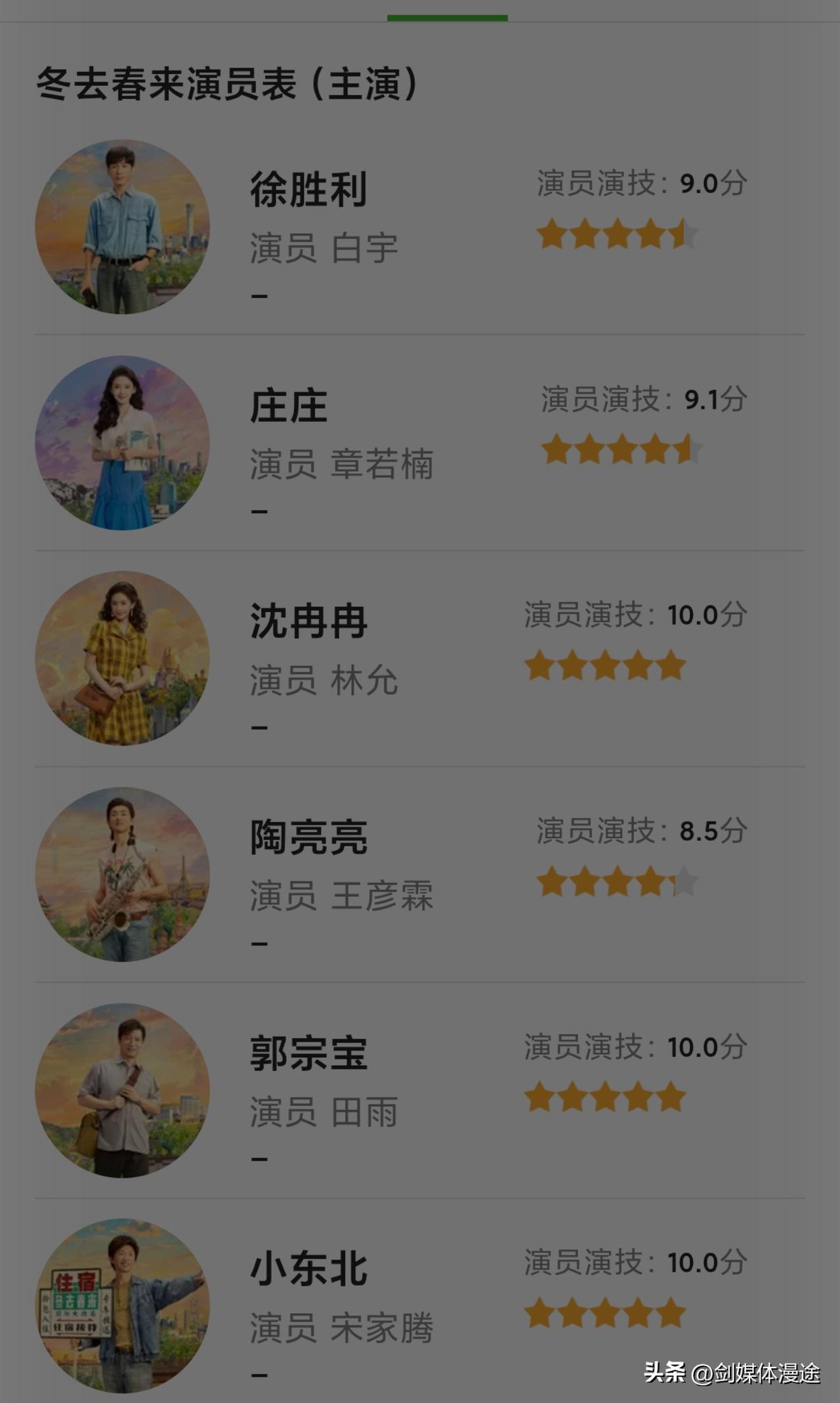《冬去春来》电视剧 的演员阵容太庞大了吧!80年代末到九十年代初的中国年轻人“北漂”生活。确实值得一看! 刚看几集,看到电视剧里面的演员阵容 那不就是当红热络青年俊才 青涩美妹,章若楠、白宇、林允、王彦霖等 剧情好,主要就是郑晓龙导演为了这一部剧 召集这么多年轻当红演员 再到众多老戏骨演员,让这一部年代剧值得大家品品。 不过对于60后,70后 80后这三代人来说,如果有曾经“北漂”的年代生活经历的,更加值得让这部戏带你回90年代的你。包括北京马路上的“黄色面的”“汽水”,驻唱,睡地下室等等曾经的生活轨迹,在这部电视戏里都可以展现出来。值得45~50岁以上的中年人好好 的回味一下当年的“北漂”!回头想头,当年真的不容易呀!而这种经历也值得一生的回味! 另外这么宠大的演员阵容,这也是近年来第一部戏才有的!