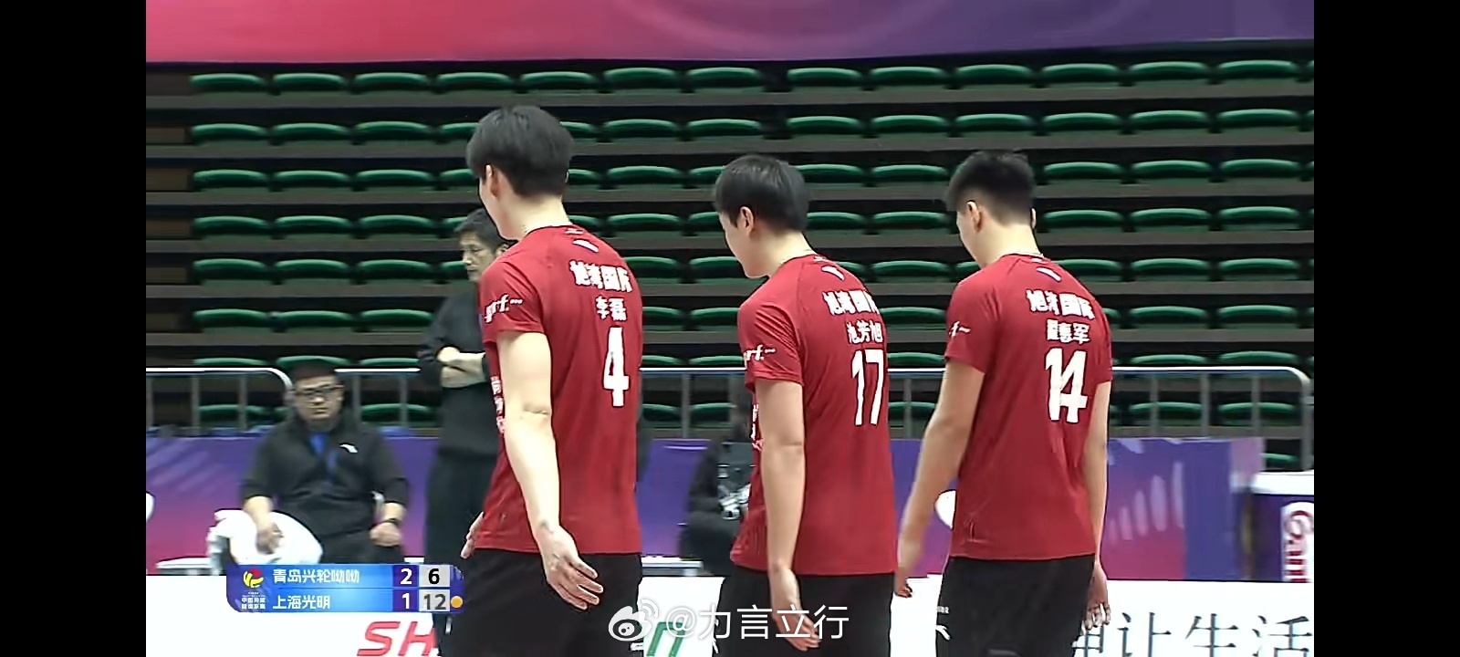 排超联赛 上海男排2比2青岛男排,第四局这就是个发球局啊,各种发球直接得分、直接