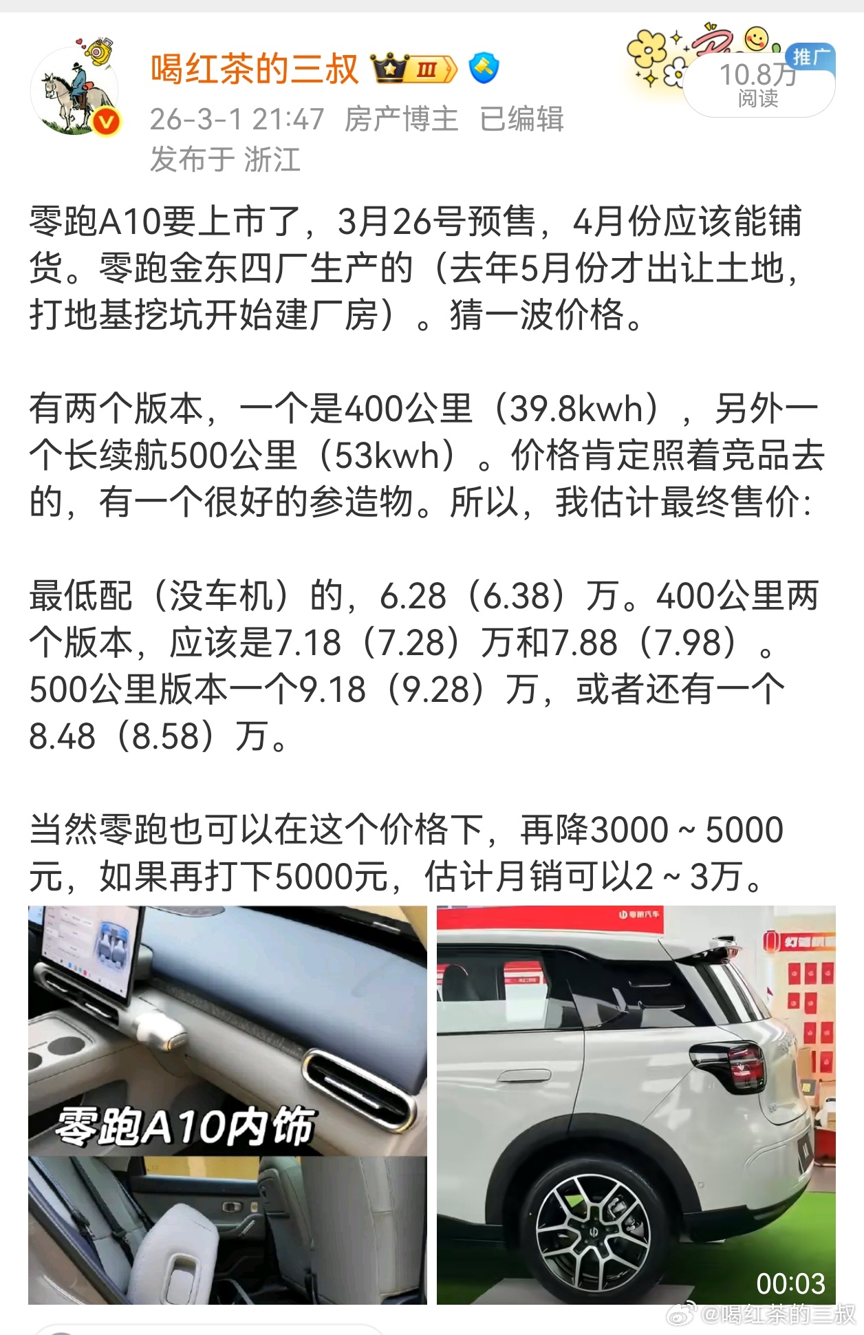 零跑A10上市价格,真的比我预测便宜了5000元。月销2~3万辆,应该是问题不大了。