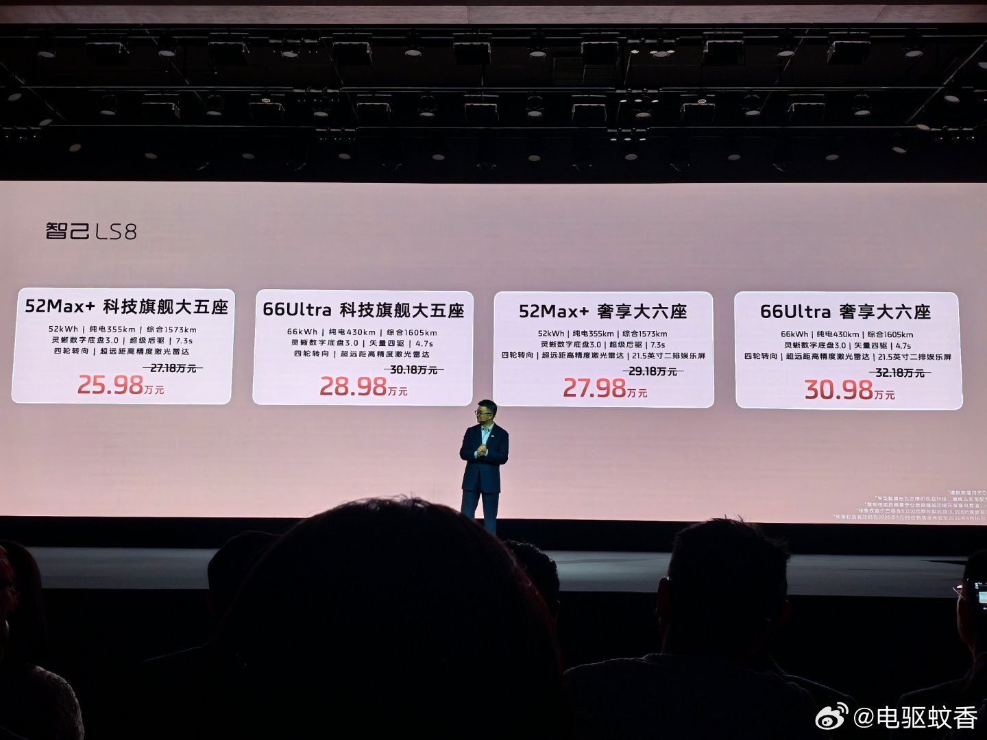 售价来了,主力车型28.98万,全线控选装包1万,智选包9800,颜色免费选装,预售3000抵15000,送冰箱,送BO音响,首任车主智驾免费,底盘配置全部标配!今天下单的用户交车可以获得一个BO音响智己LS8跨时代科技旗舰SUV智己LS8新能源汽车