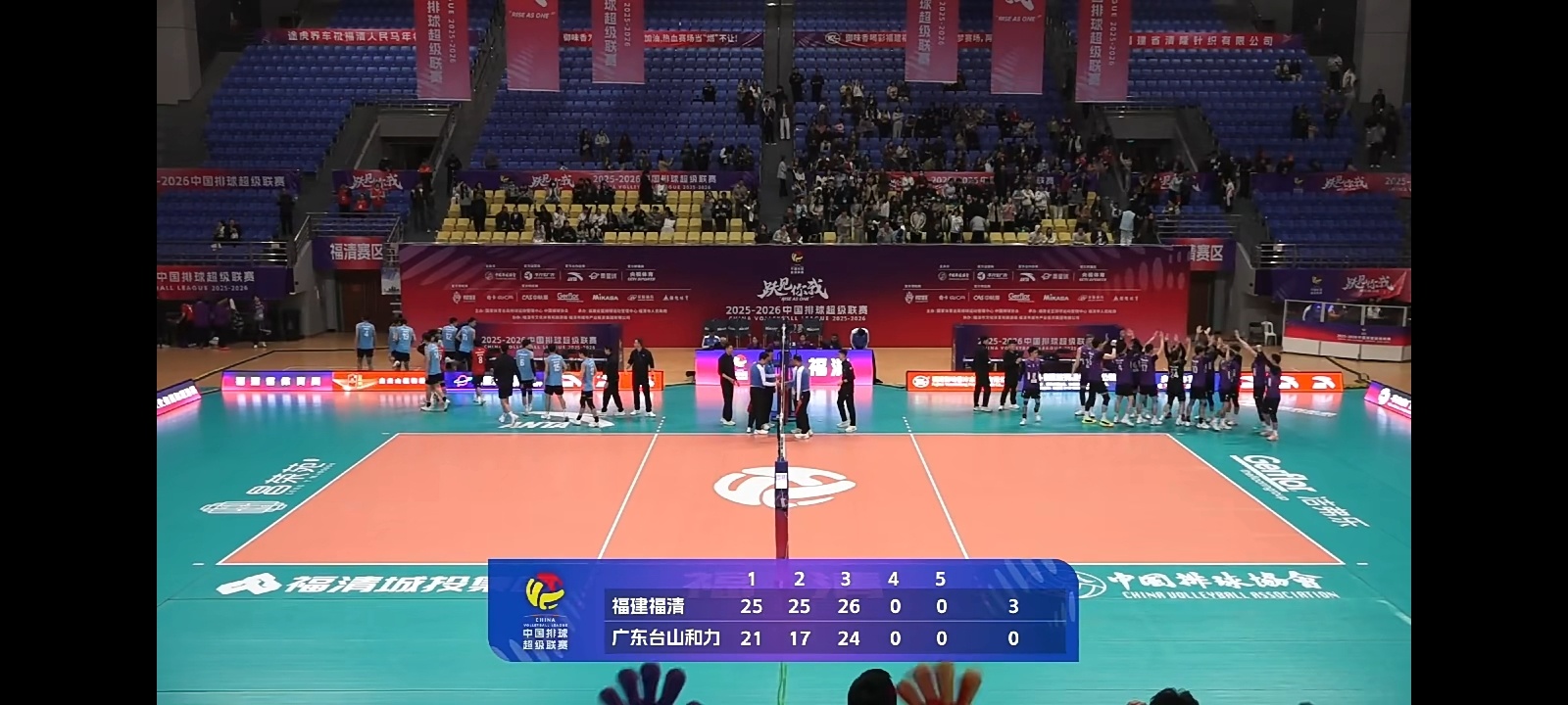 排超联赛 福建男排3比0广东男排,在5-6名第一回合的比赛中取得领先,福建男排这