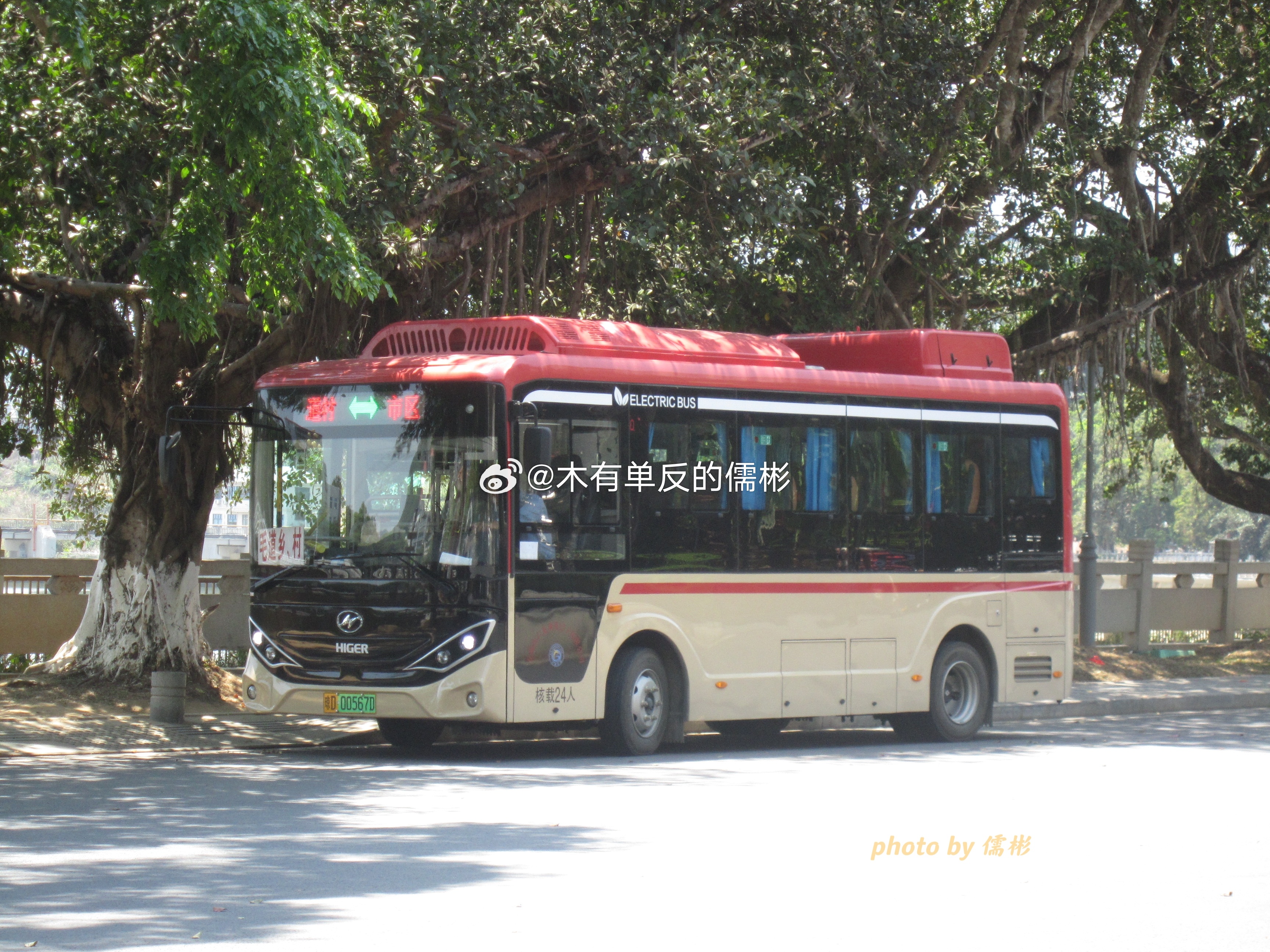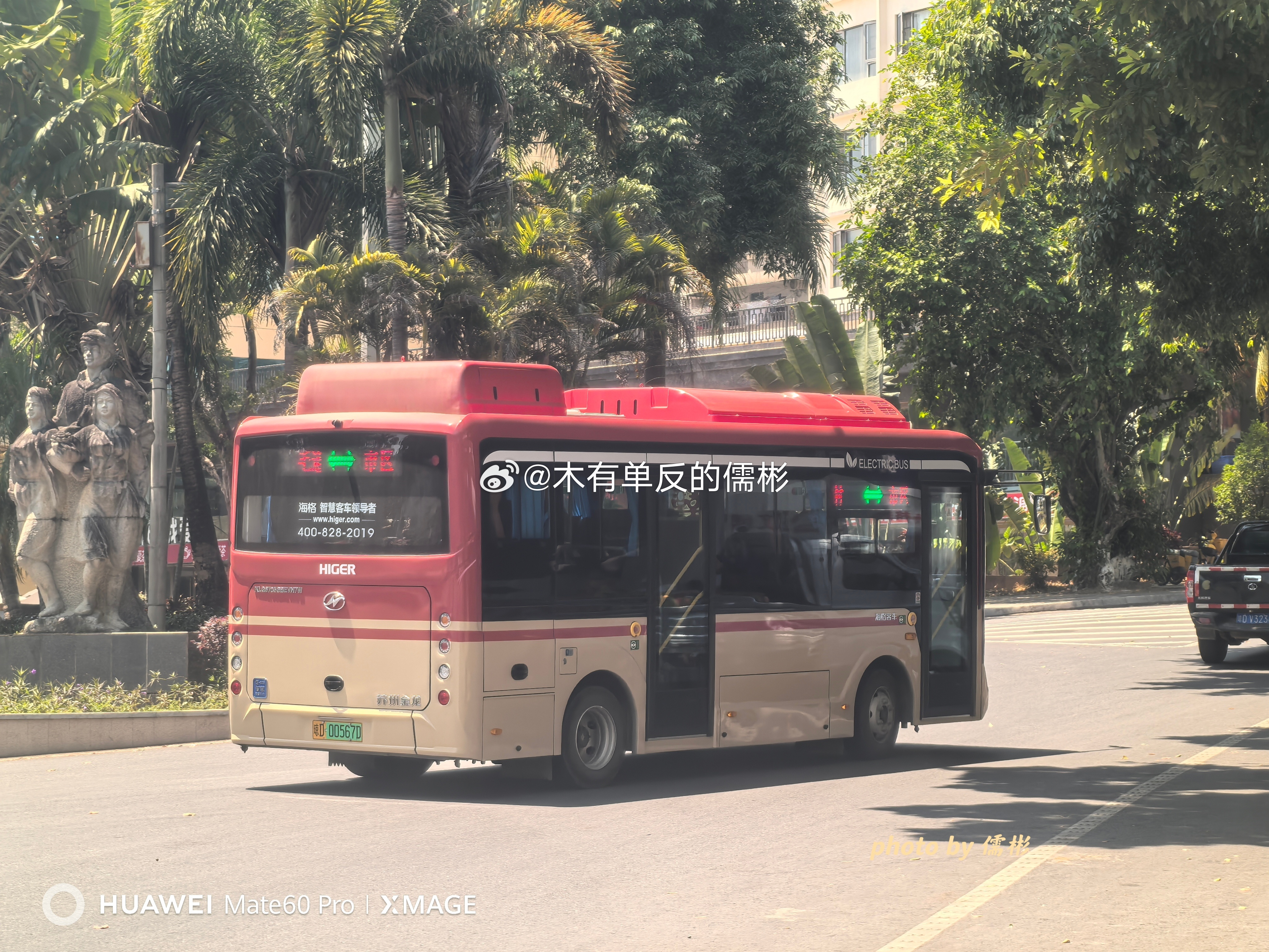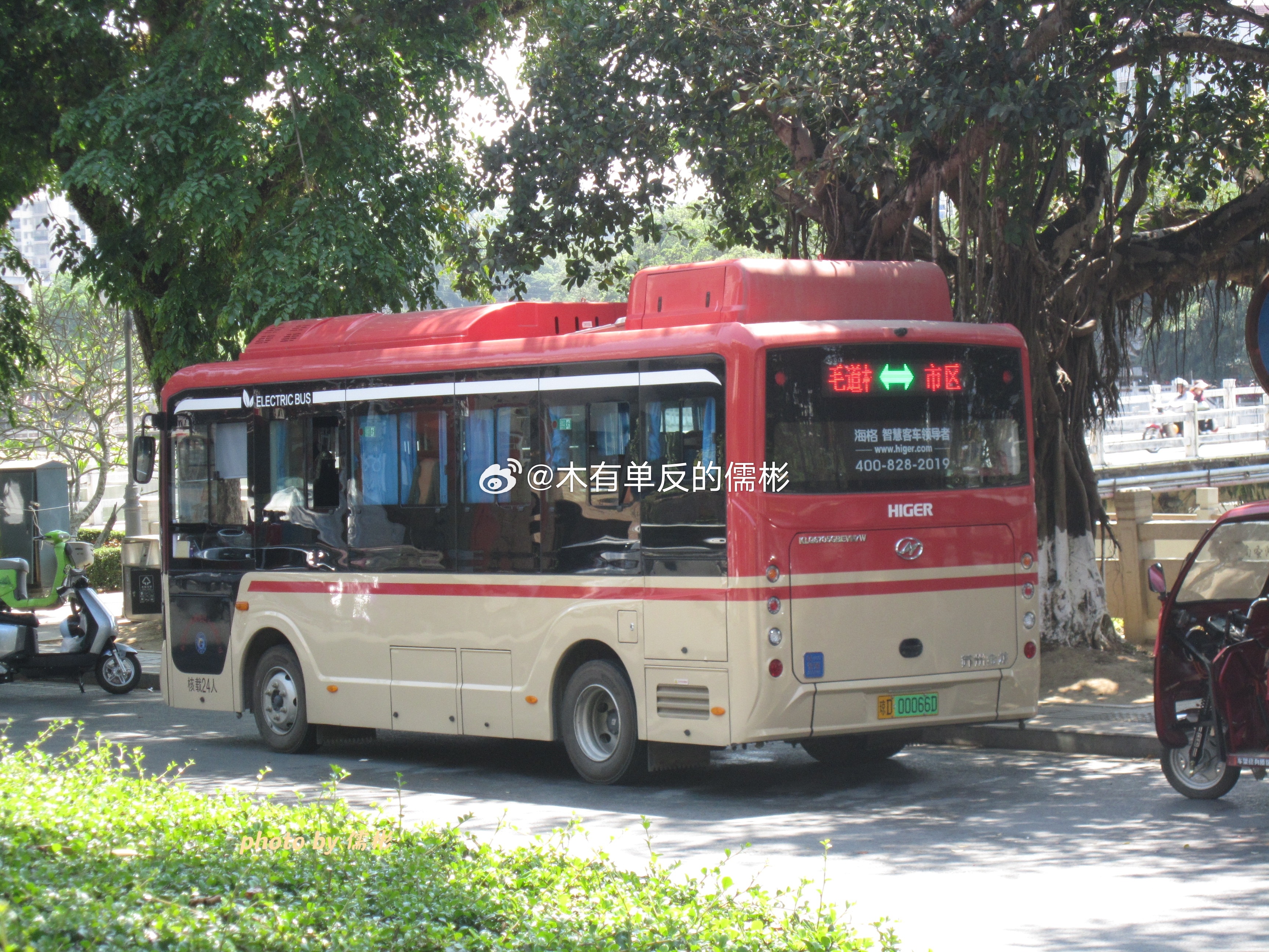 五指山六龙巴士买的3台无站立海格清澜KLQ6705GBEVN7W也是终于上线了果然跟我猜的没错,就是跑的毛道线,始发站在春和酒店那个小转盘,刚好旁边有座桥那