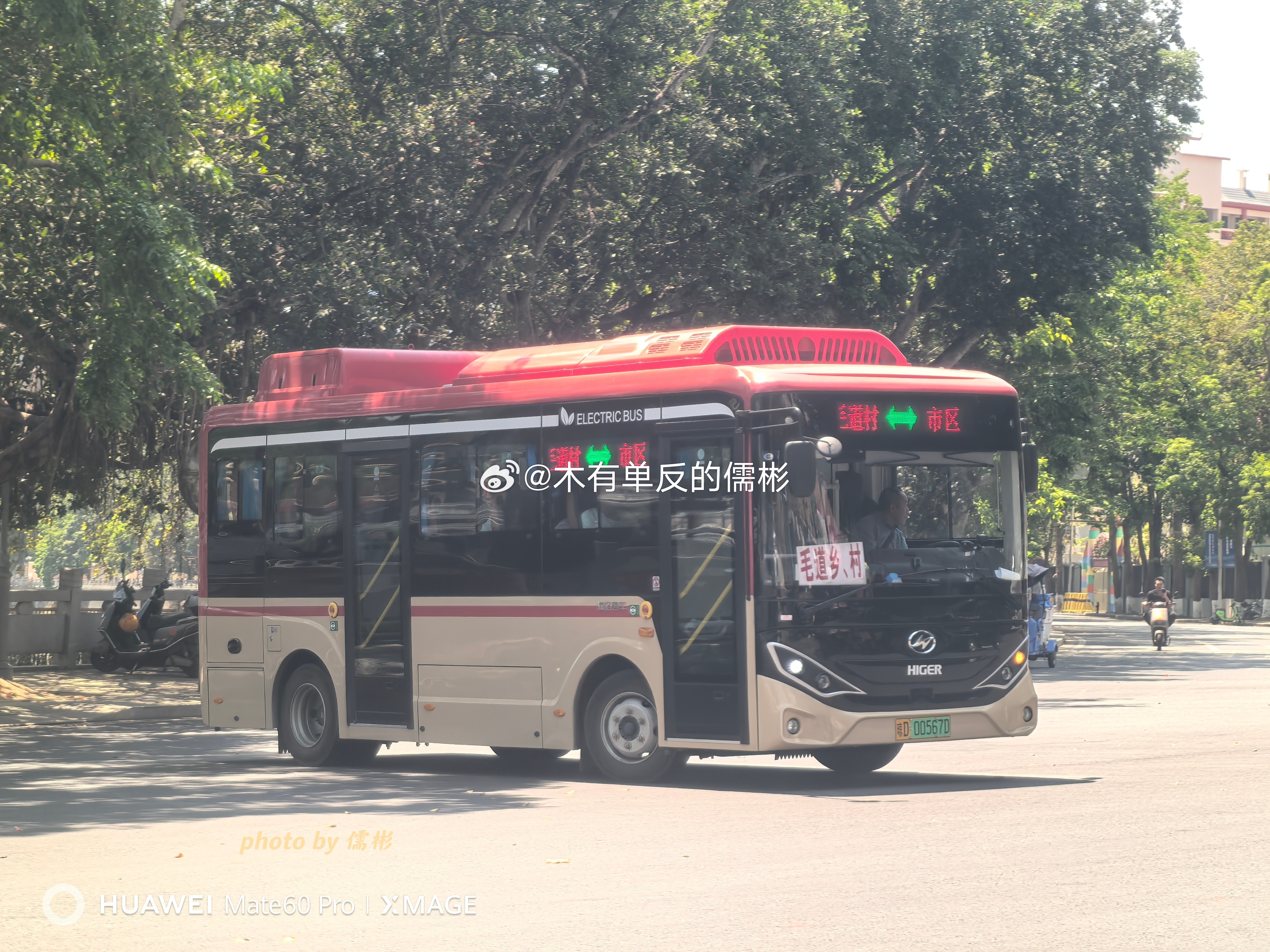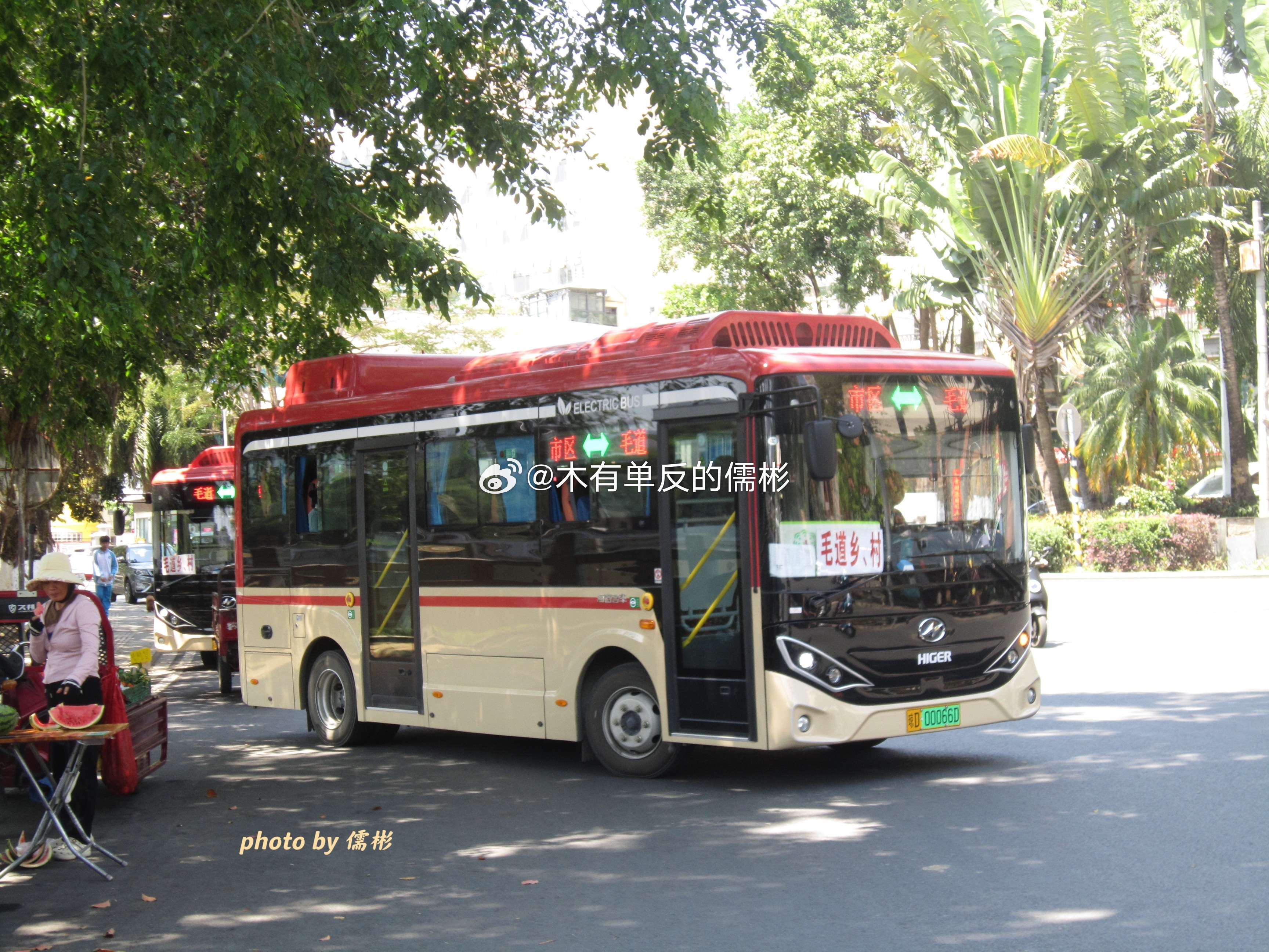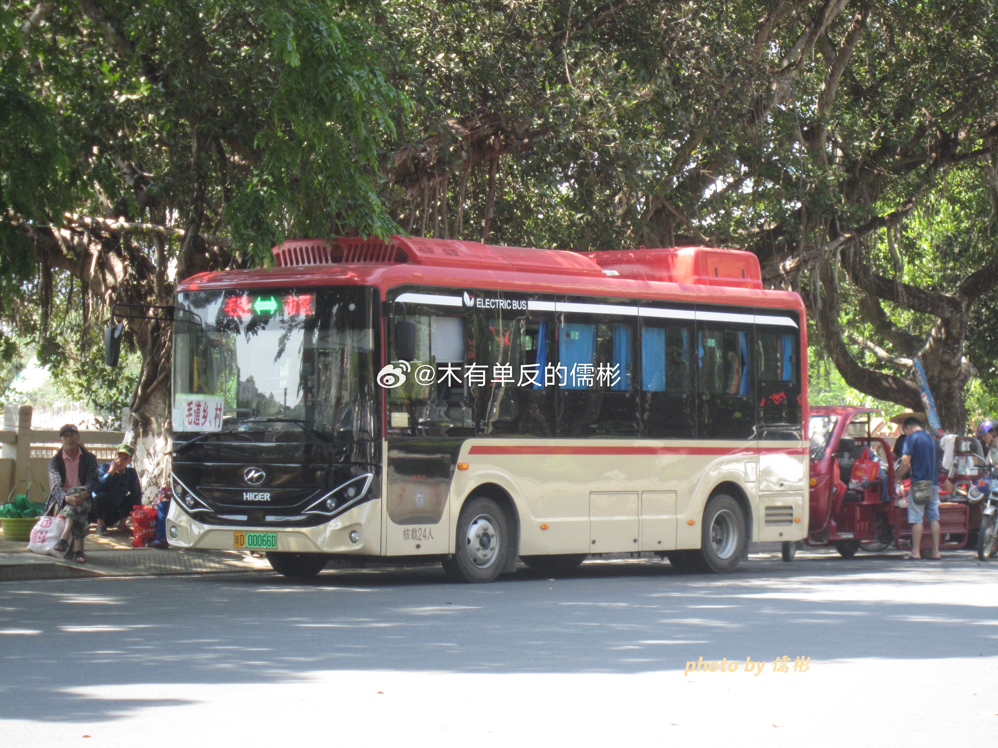 五指山六龙巴士买的3台无站立海格清澜KLQ6705GBEVN7W也是终于上线了果然跟我猜的没错,就是跑的毛道线,始发站在春和酒店那个小转盘,刚好旁边有座桥那