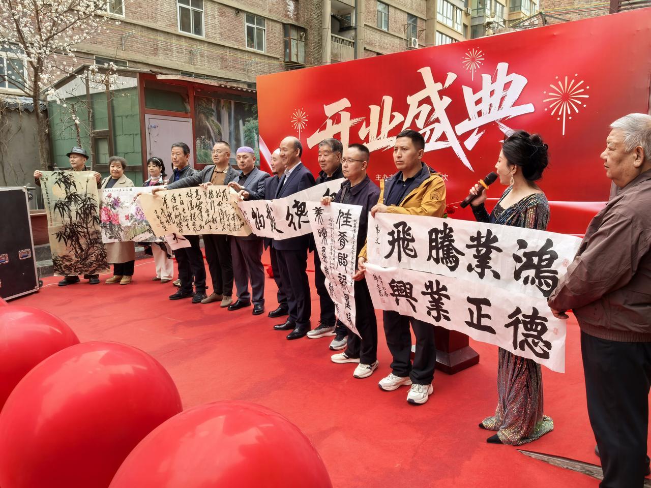开业盛典,在甘肃省毛体书法研究会,及著名画家方昌基,著名书法家韩文,向佳美食家餐饮店负责人赠送书画作品后圆满结束。