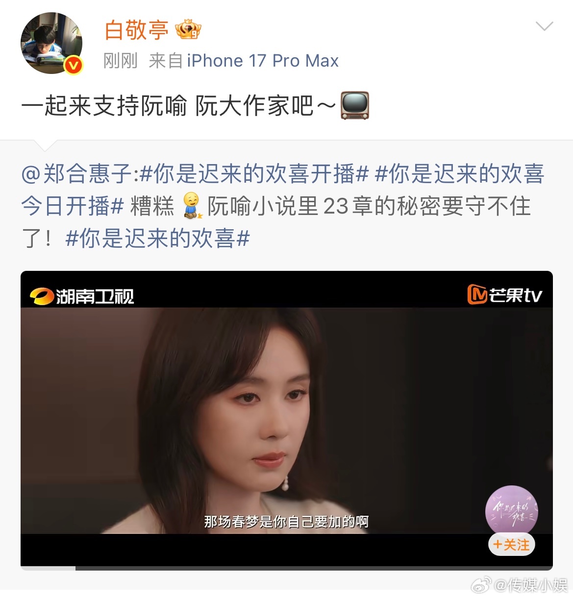 白敬亭转发了郑合惠子微博,给她的新剧宣传!! 是谁的古早cp互动了!! 白敬亭郑