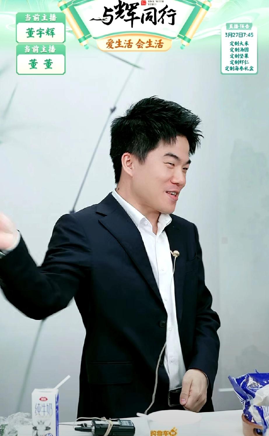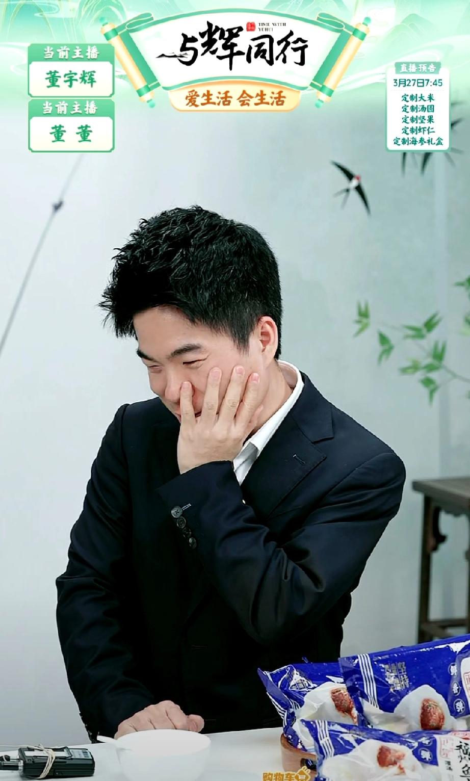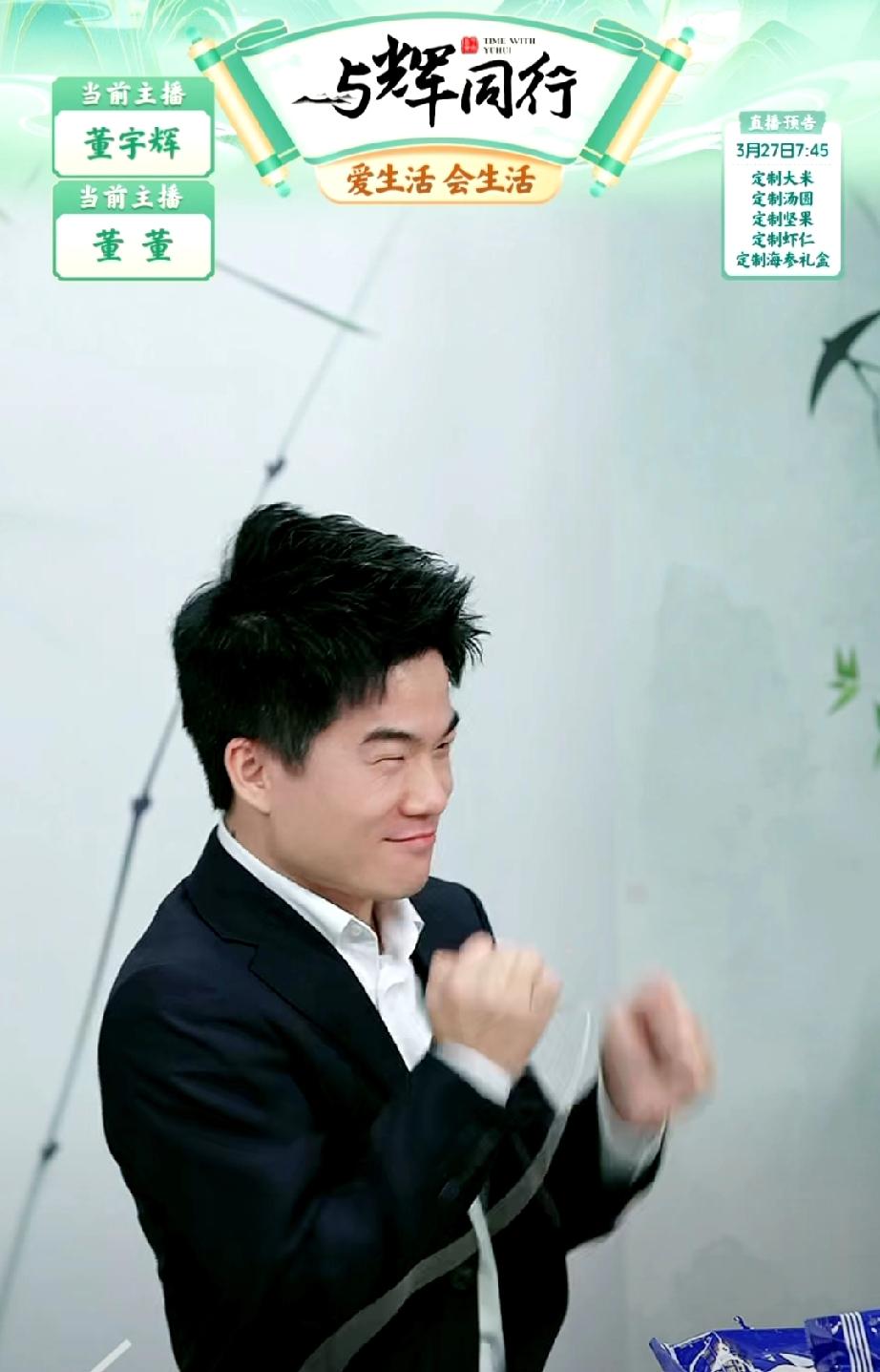 真是快被董宇辉笑死了!他刚刚在直播间里畅想了60岁要去公园迷倒一片老太太,居然要把发型理成鱼丸造型的。 宇辉还说他要到公园里跳广场舞、撞树、抽陀螺、用脖子甩呼啦圈……就等着60岁散发魅力了。 有朋友说,这是表演系毕业的吧?也有朋友说,别说那些没用的,还是先找个翠花吧。 董宇辉真的能算是个不折不扣的即兴表演天才。 他说这个时候就在公园里面有一个人带着孙子和他的孙子说:“孩子,你看,不找个正经的工作就疯了,这人就是我眼见着疯的,当年还是个文艺青年呢。”谁都不服,就服董宇辉,他想象力咋那么丰富呢? 董宇辉 与辉同行
