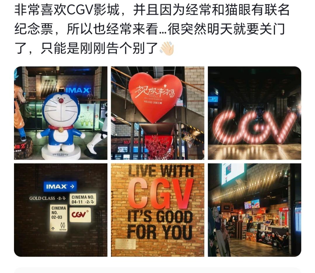 哈尔滨一影城于昨日正式关闭! 位于红博中央公园的CGV影城。 其实在平日里,去电影院看电影的人真的很少很少,只有春节档,国庆档期能有好片,人相对也会多! 而且还是年轻人居多,00后,90后,大部分的70,80后都在努力挣钱陪孩子,几乎没时间去看电影,所以,电影院我在悄悄走下坡路!