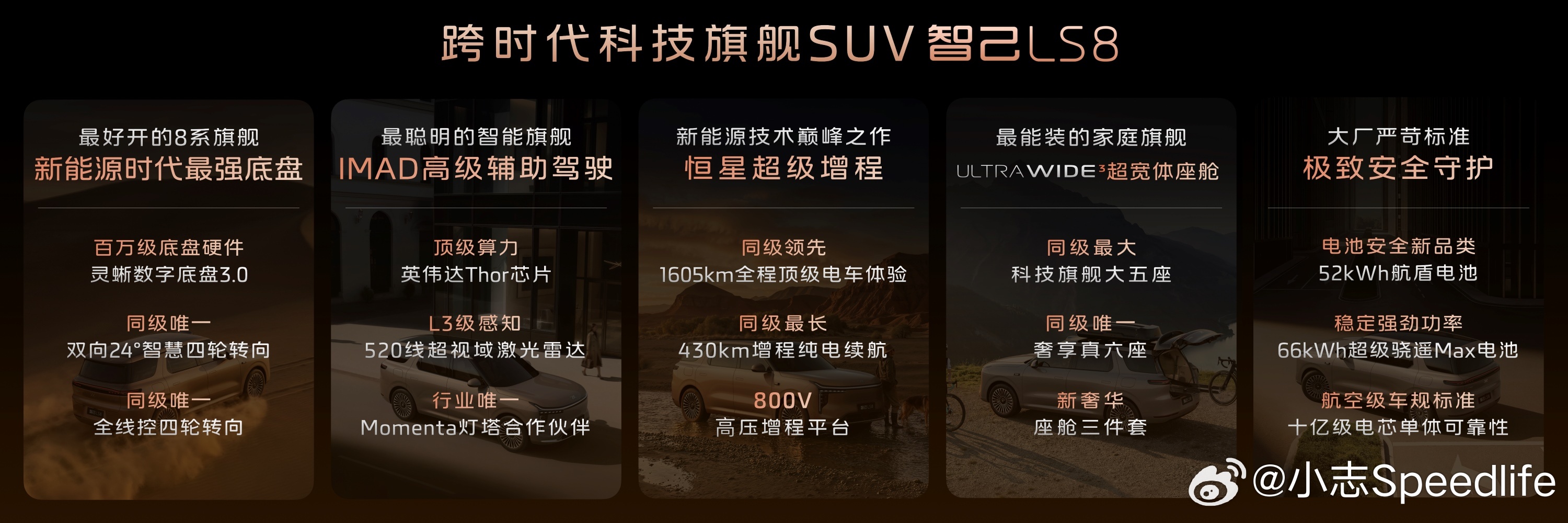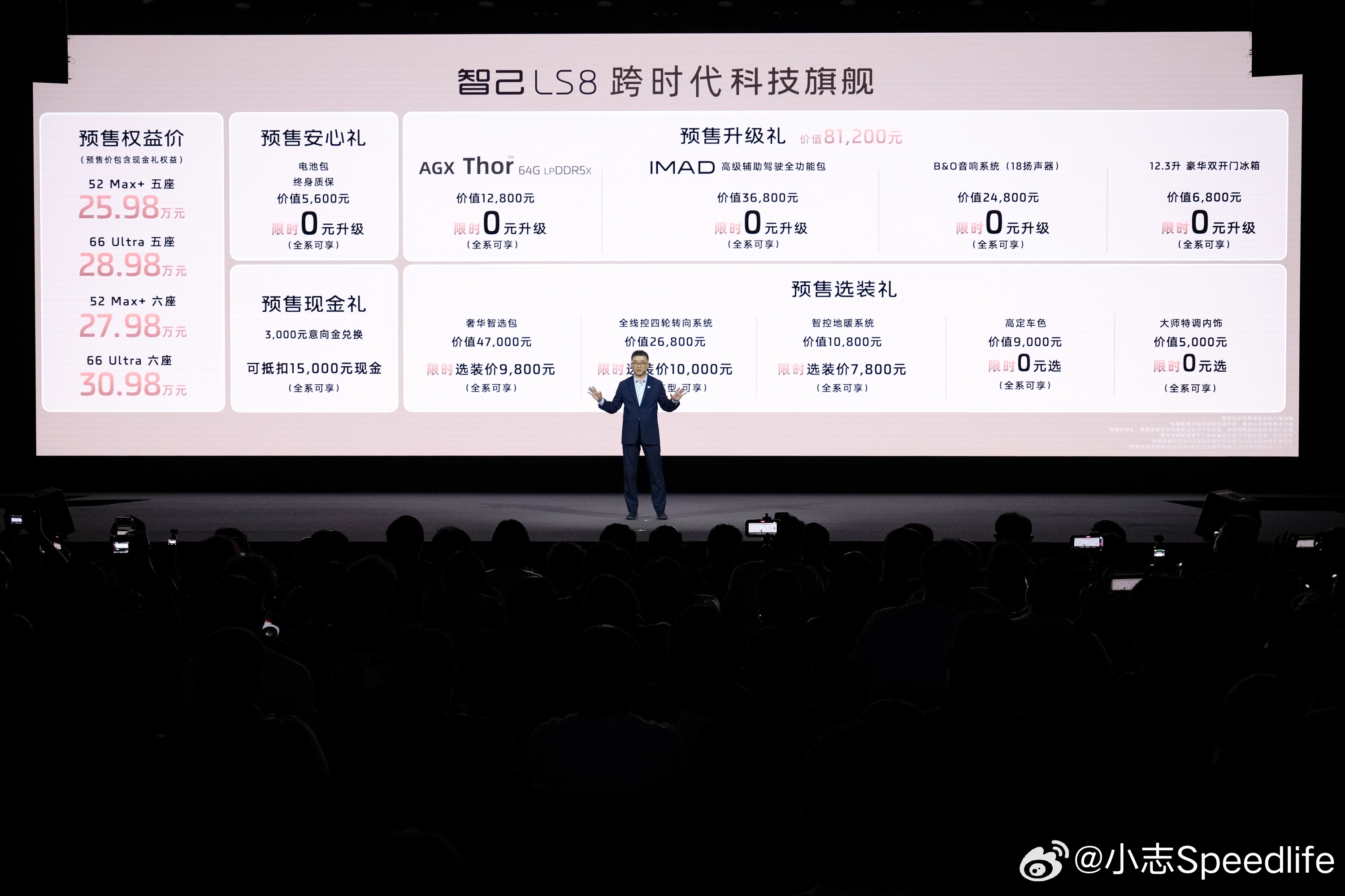 车内采用超宽体座舱,配备B&O音响、4D机械按摩座椅、智控地暖,空间奢适能装。恒星超级增程系统实现1605km综合续航与430km纯电续航,800V超快充无惧严寒,家用商务一步到位,堪称品质家庭首选旗舰。智己LS8震撼预售25.98万元起大v聊车智己LS8