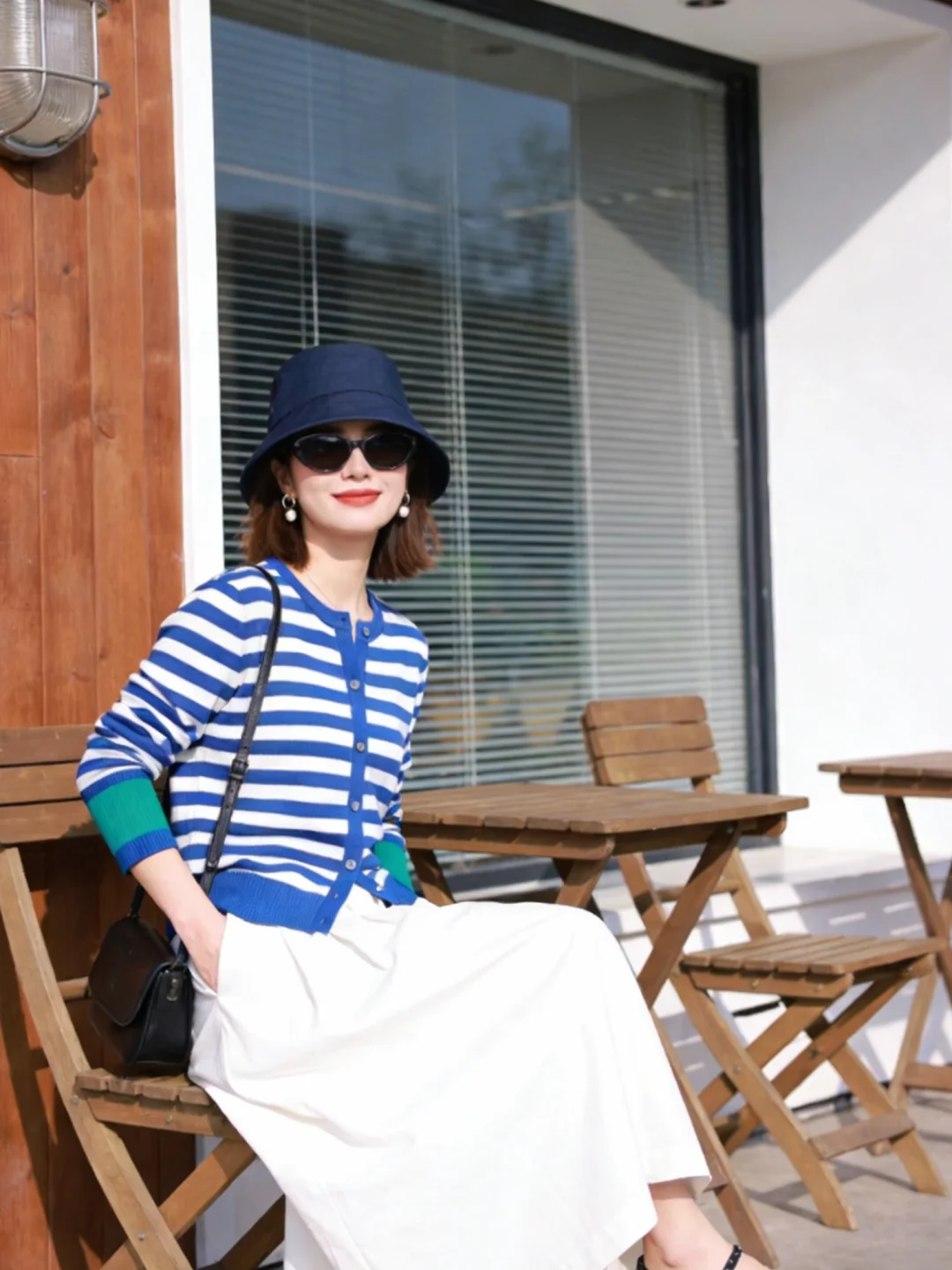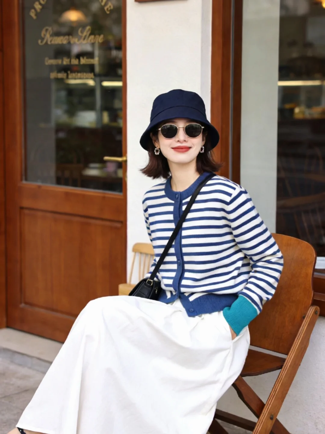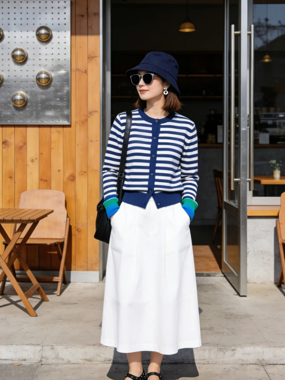 航海系穿搭 我的法式穿搭态度 呼吸感穿搭 松弛有度的简约潇洒气质 条纹衫 白色系 半身裙 白色裙子