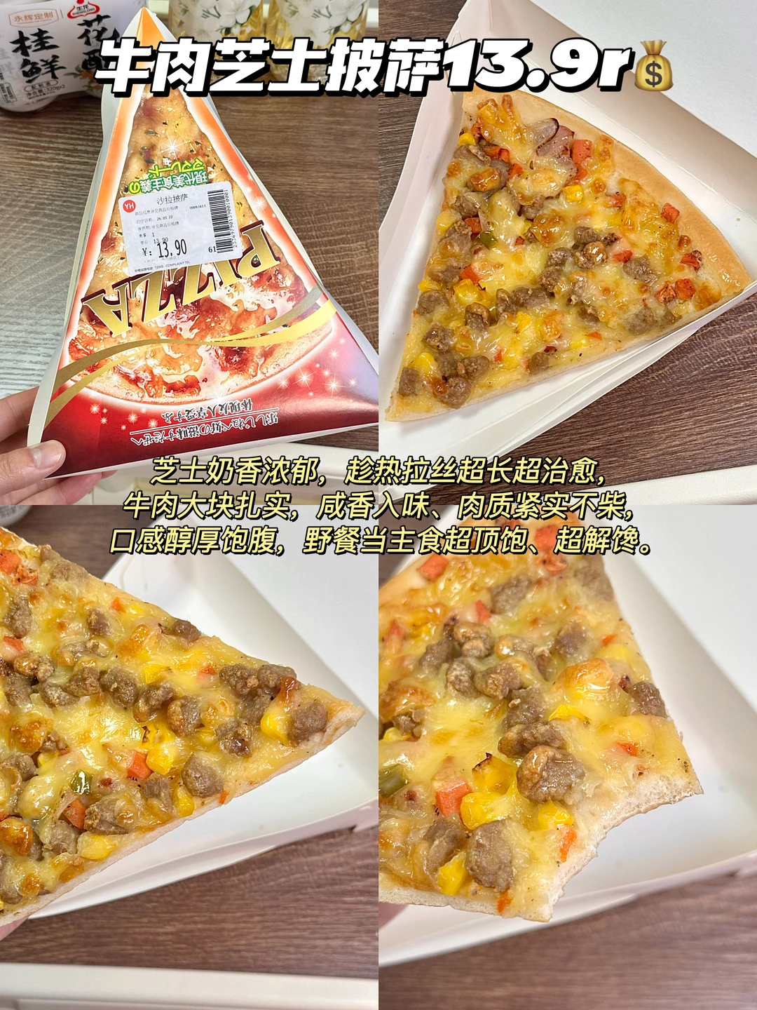 5️⃣牛肉芝士披萨:芝士拉丝超满足,牛肉料足咸香浓郁,野餐扛饿主食超合适