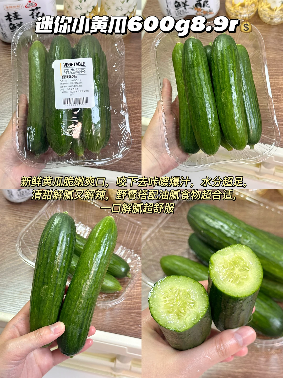 9️⃣迷你小黄瓜600g:脆嫩爽口水分超足,咬下去咔嚓爆汁,清甜解腻又解辣,口感清爽脆嫩,野餐搭配油腻食物超合适,清新又解腻。