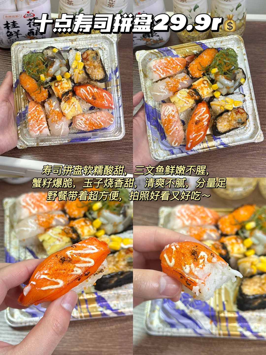 6️⃣珍味寿司拼盘:多种口味一次尝遍,颜值口感双在线,野餐摆盘氛围感拉满
