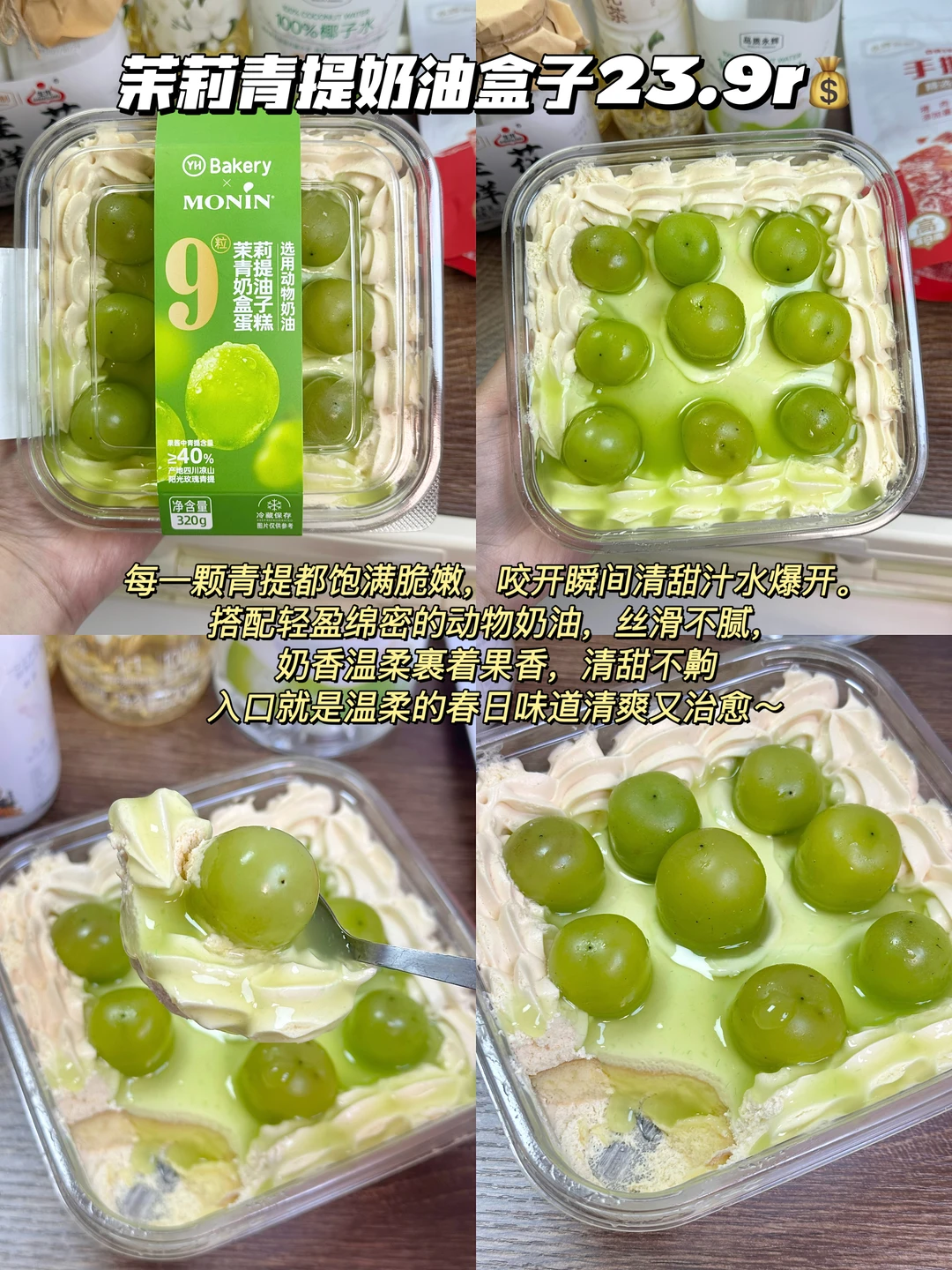 1️⃣YH Bakery茉莉青提奶油盒子:清甜青提搭配绵密奶油,果香浓郁,一口尝尽春日清甜。饱满青提脆嫩爆汁,搭配丝滑不腻的奶油,奶香柔和不齁甜,清爽又治愈,每一口都是温柔的春日味道。