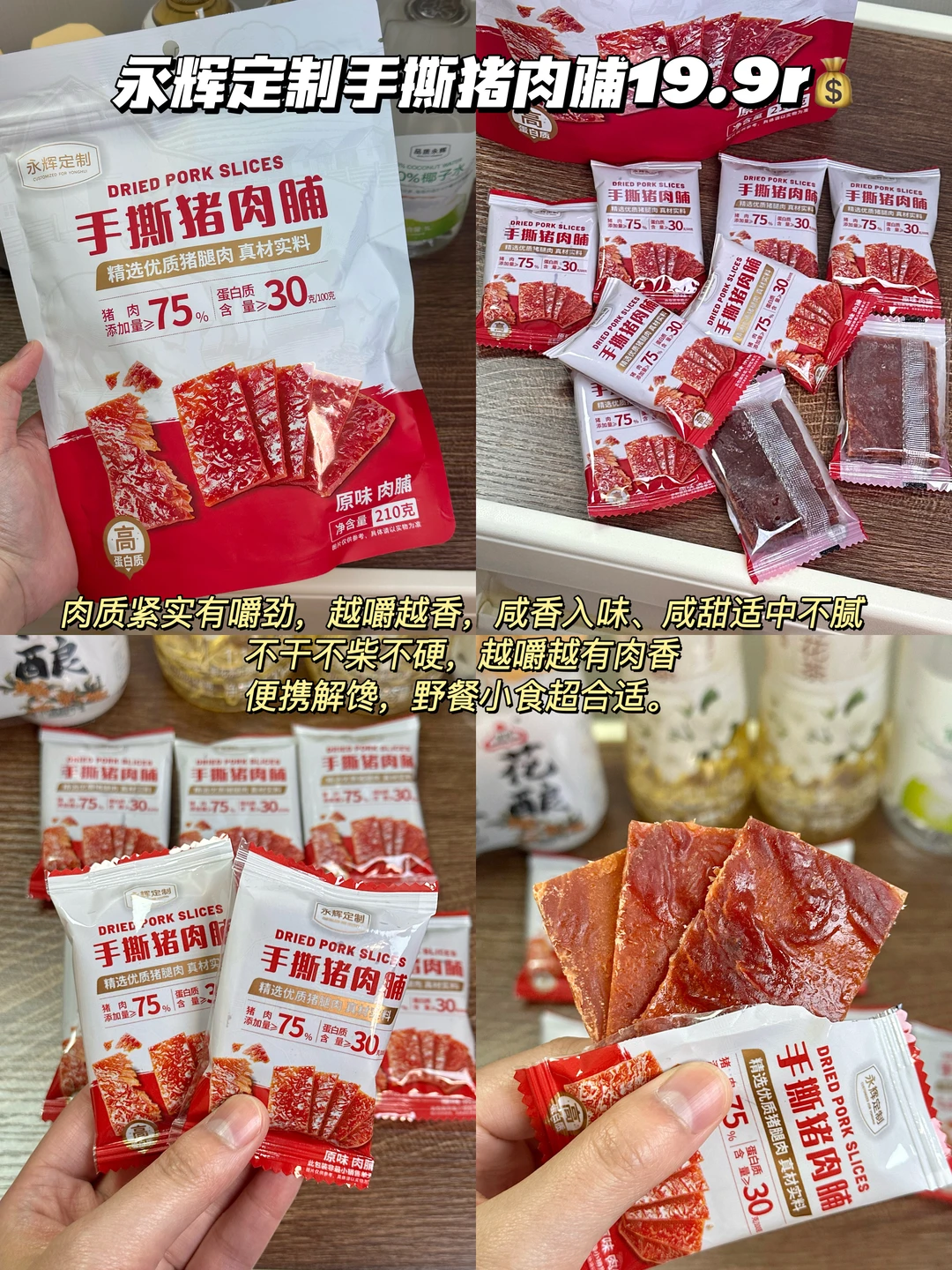 4️⃣永辉定制手撕猪肉脯:肉质紧实有嚼劲,咸香入味不腻口,野餐解馋小食首选