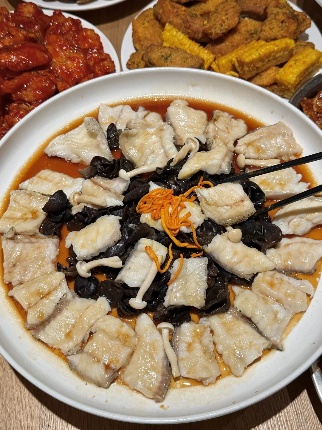 终于没有踩雷了!跟着青岛网友推荐来吃的! 之前就做了攻略发现他家口碑不错~果然没失望!难怪饭点本地人都扎堆来吃! 不夸张,他家口味都吊打台东那些网红店……我们点的锅包虾很有锅气~好吃哭!一人一筷子都抢完了。咸蛋黄鸡翅真心要推荐,是回头客坠爱!还有山楂排骨耗儿粉好开胃🤤真的越煮!越!好吃!来青岛不吃这家等于白来 招牌菜龙趸鱼也是地道青岛味!淋完酱汁拌米饭绝了!!吃完记得再打包一份棉花糖芝士焗番薯,香甜糯叽叽好幸福! 📍记住这个店名:宴小馆,就在五四广场附近地铁直达
