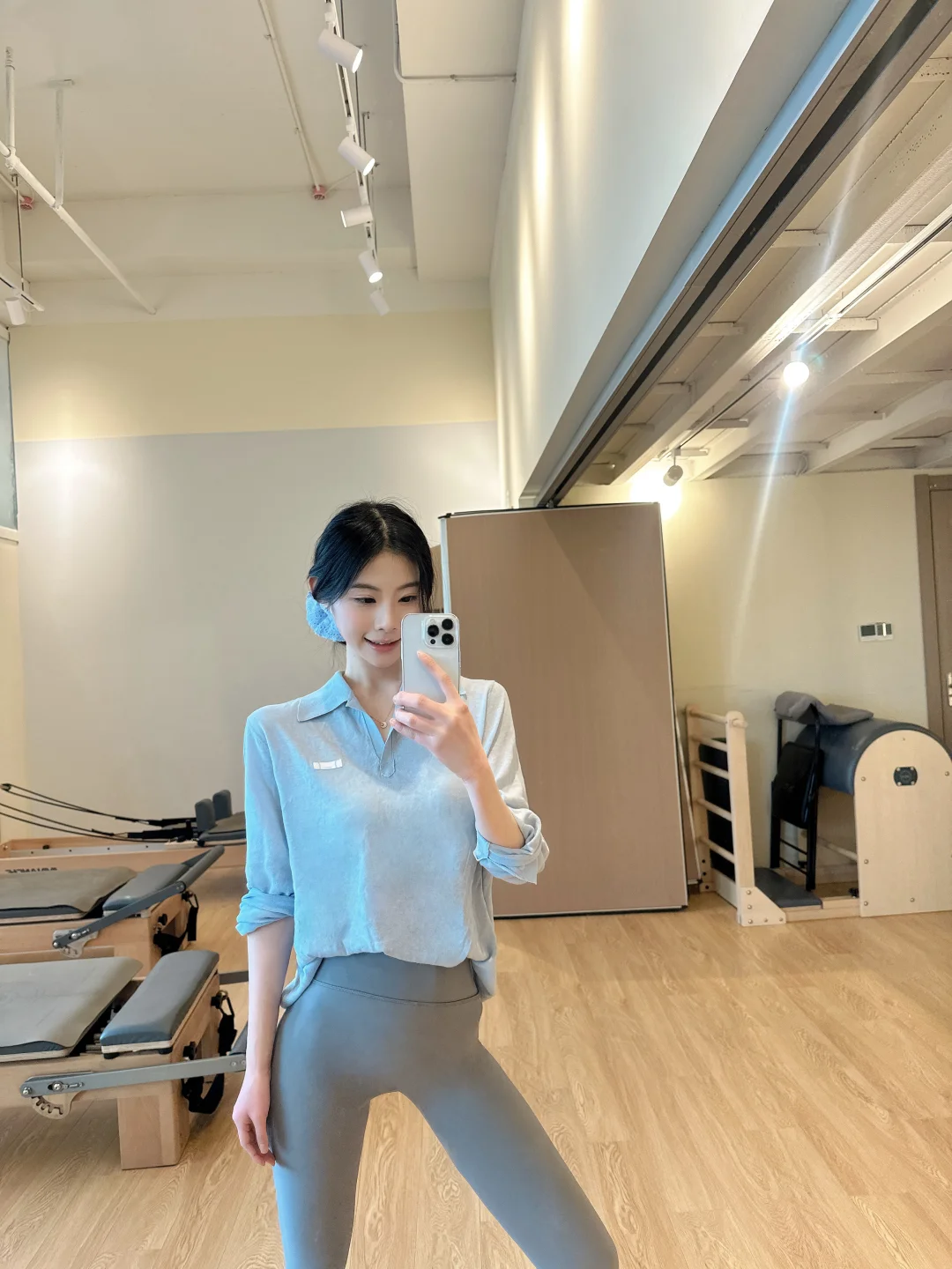 这套蓝灰调穿搭太戳我了💙 SIINSIIN能量鲨鱼裤+浅蓝罩衫,温柔又显气质。 这条能量鲨鱼裤真的懂普拉提女孩✨ 高弹无痕、裸感贴合,大幅度伸展也毫无束缚 能量级支撑力贯穿全身,每一次动作都有扎实的底气托举 高腰微压收腹 + 提臀塑形,练线条时体态更好看 面料软糯亲肤、不闷不卡裆,久坐舒展都自在。 普拉提的魅力,在于张弛有度的生命力 在一呼一吸间,感受身体的柔软与坚定 把简单动作做到极致,在当下遇见舒展又充满能量的自己。