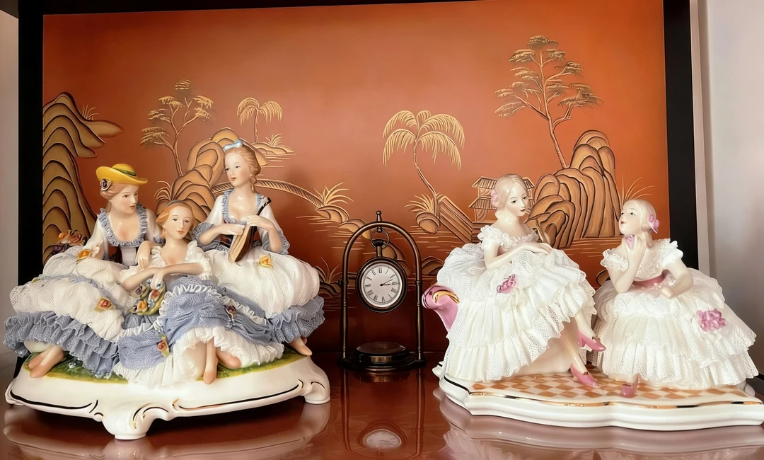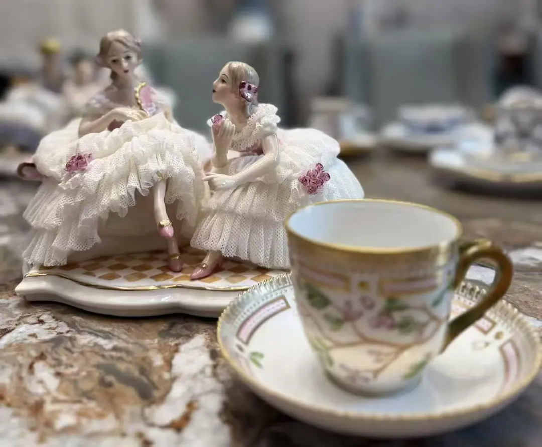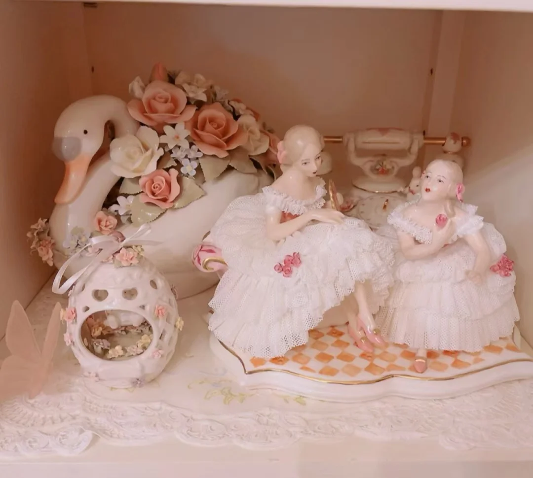 高温骨瓷少女摆件双人款💖蕾丝裙摆美到失语