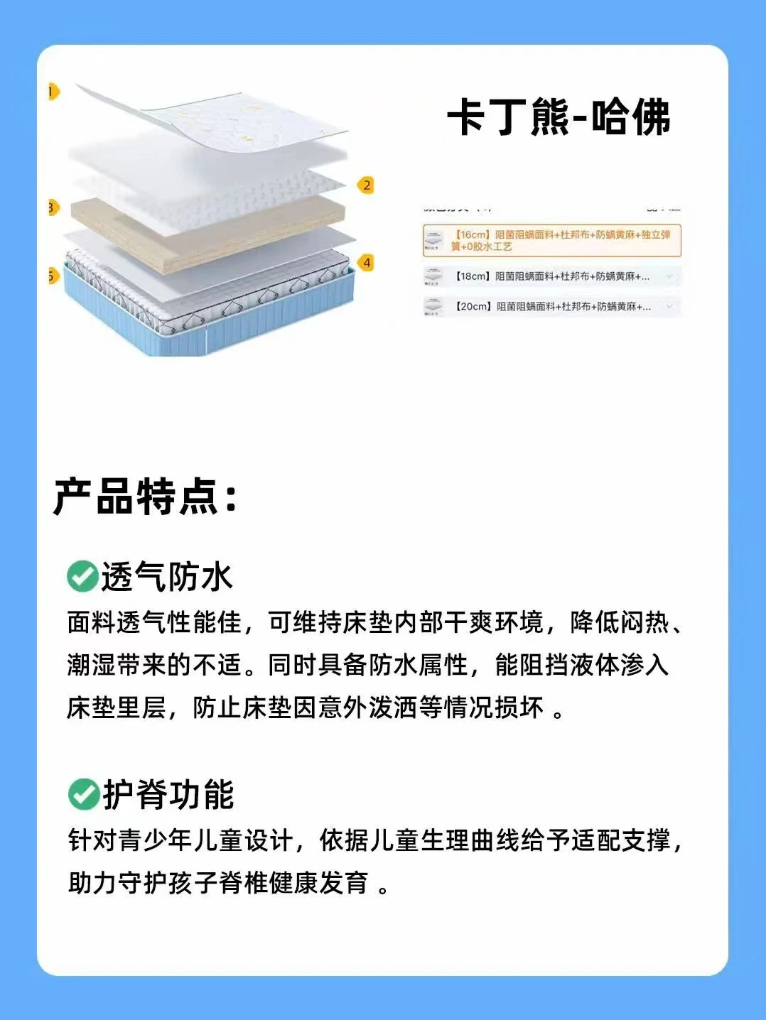 卡丁熊儿童床垫 卡丁熊床垫 儿童床垫 床垫舒适层 健康的生活从睡眠开始 弹簧床垫 健康睡眠 环保床垫 宿舍床垫 天然乳胶床垫