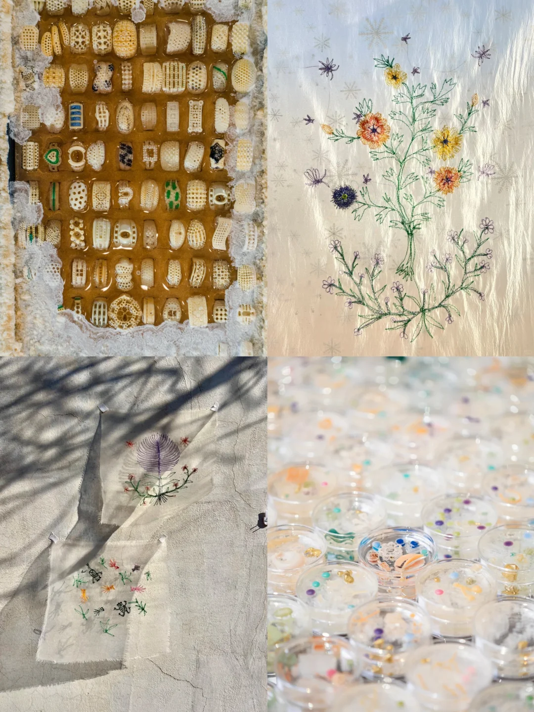 展览被拆成四个章节,像翻开一本大地的诗册。这里的艺术不再是隔着玻璃的凝视,而是可触摸、可种植、可感受的存在:你可以触摸纤维延展的肌理,感受材料呼吸的节奏,甚至在互动装置里种下一颗属于自己的种子——生命力从来都不在远方,它藏在脚下的泥土里,藏在掌心的种子里,也藏在每个人的日常里。