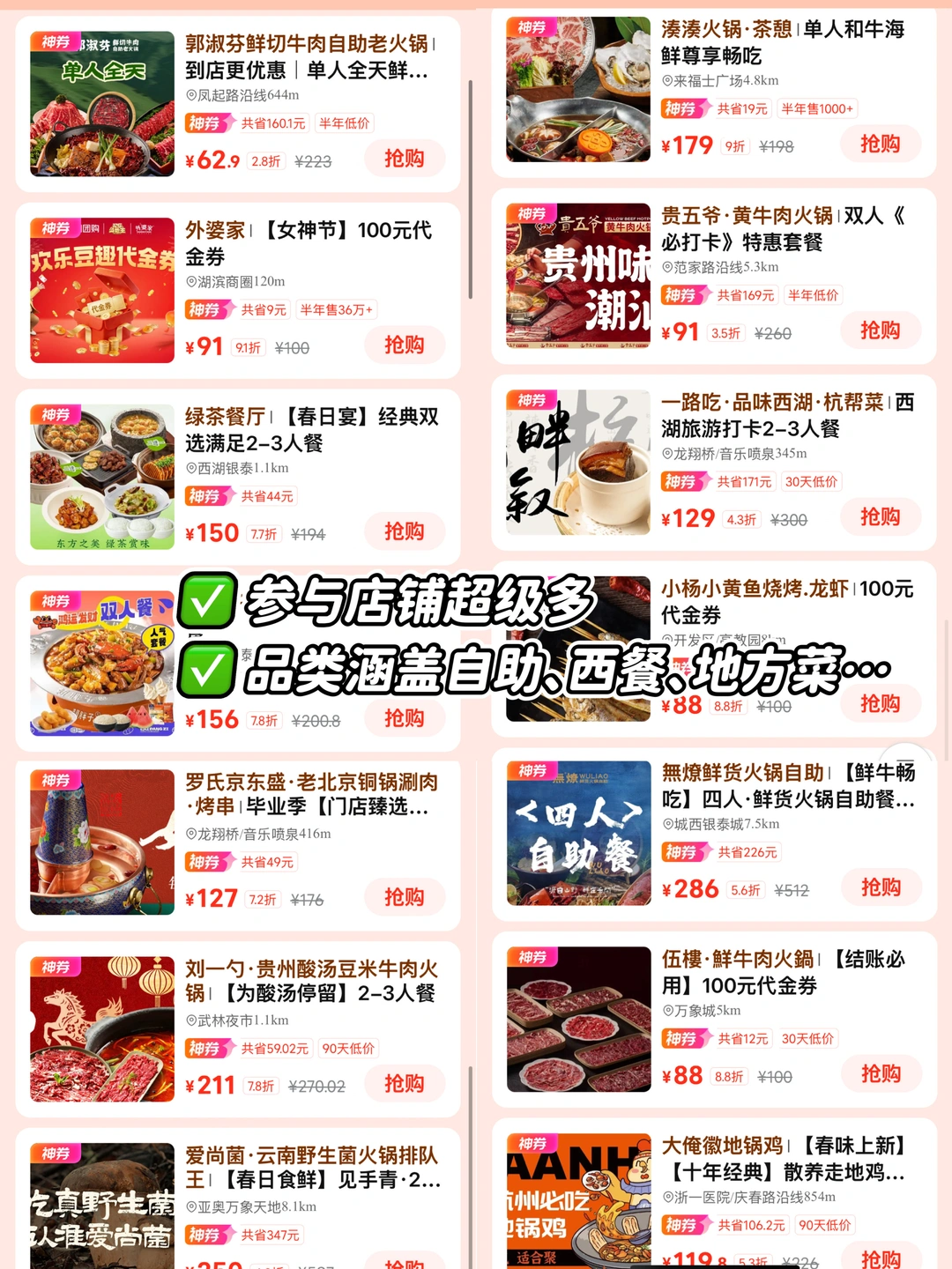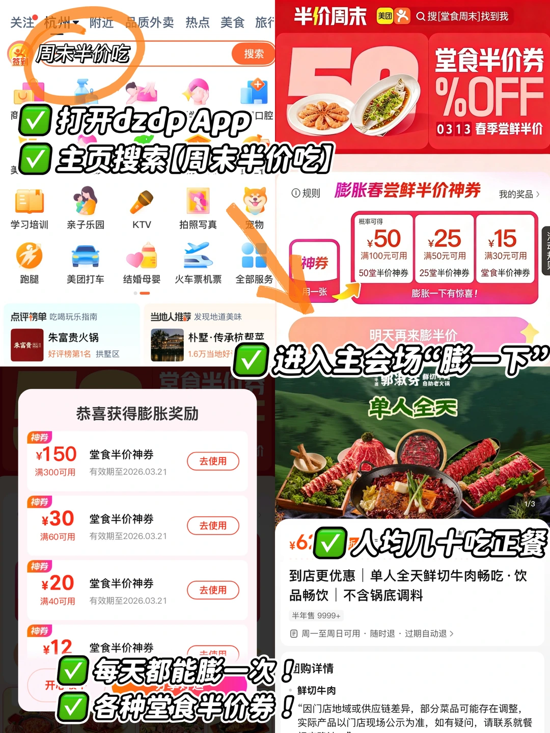 运气好的还能get100-50、200-100、300-150元的大额半价券!直接立省一顿饭😭