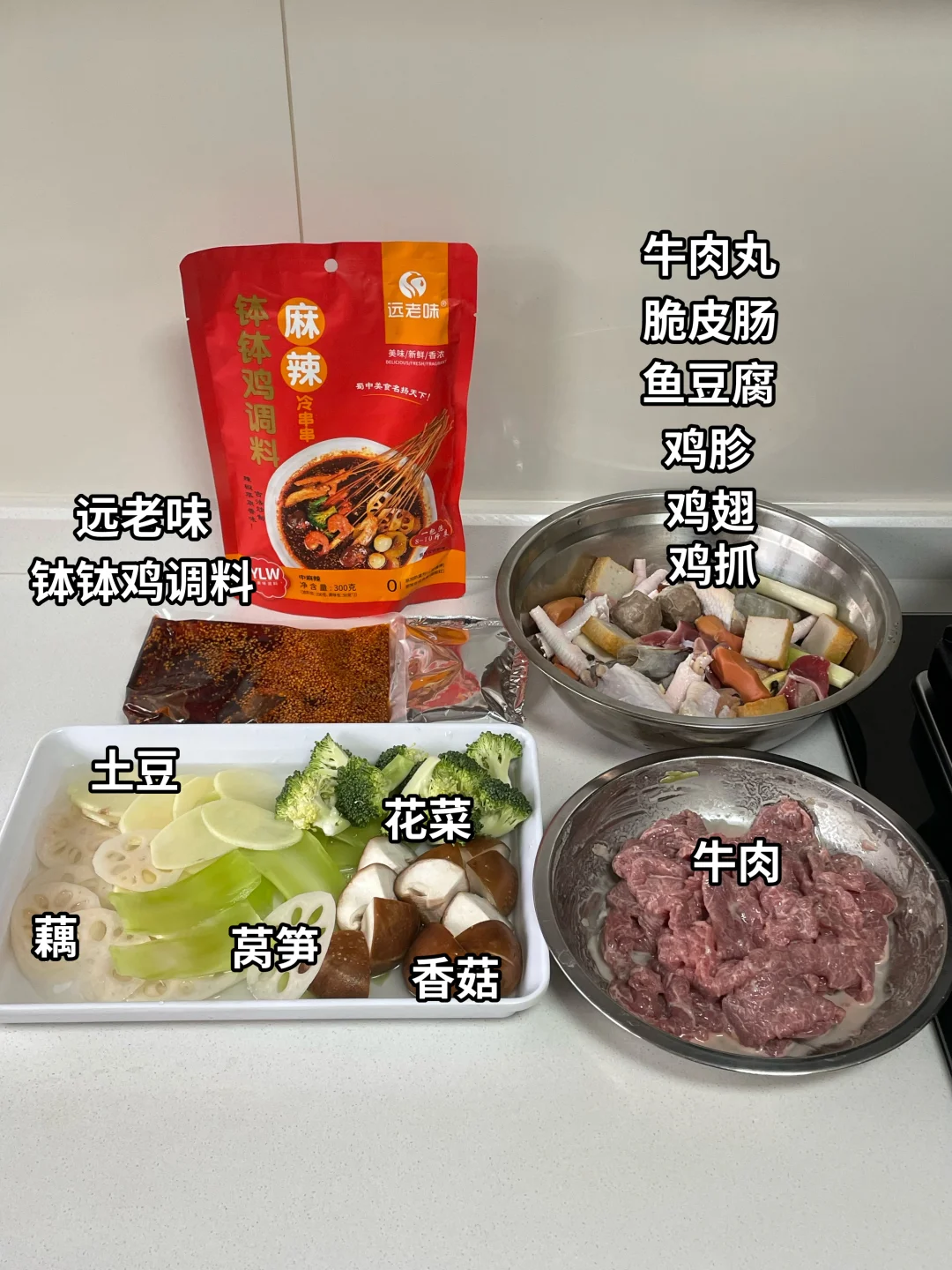 🌶️食材:自己喜欢吃的菜,远老味钵钵鸡调料