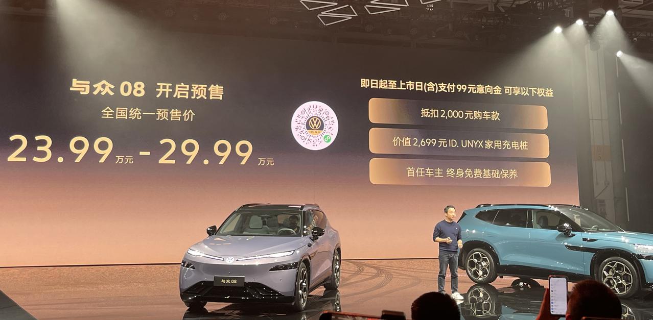 与众08,新大众更懂新中国人? 预售23.99万-29.99万元,532尺寸,800V架构,CLTC续航730公里,双腔空悬与魔毯预瞄,1500TOPS算力,双15英寸2.4K联屏,化妆镜、冷暖冰箱、双人床都配齐了——继上汽大众ID.ERA 9X之后,与众08又秀了一次今天的大众究竟有多懂中国新能源用户 你觉得这两台新大众,谁在研究新中国人这条赛道上更胜一筹?【来自懂车帝车友圈】