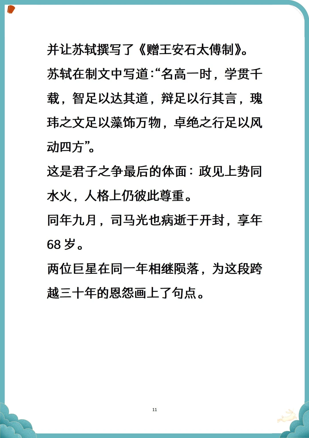 记录吧就现在 [微笑R]在11世纪的北宋,有这样一对“顶级大脑”——王安石与司马光。 [哭惹R]他们从惺惺相惜的知己,到势同水火的政敌,用一生演绎了“理念之殇”的古典悲剧。