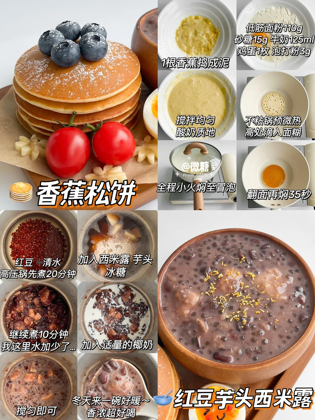 🥣香蕉松饼➕红豆芋头西米露