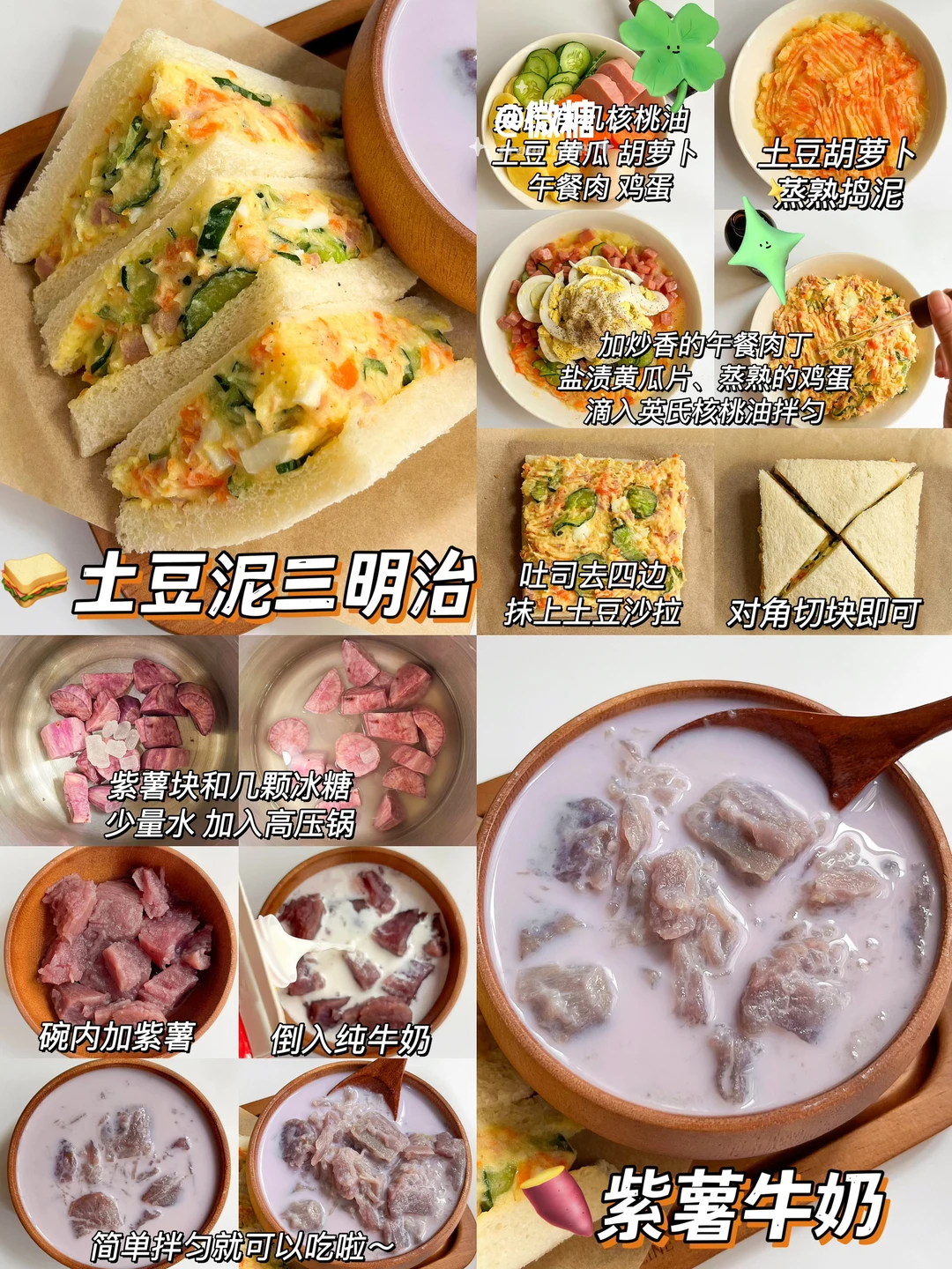 🥣土豆泥三明治➕紫薯牛奶