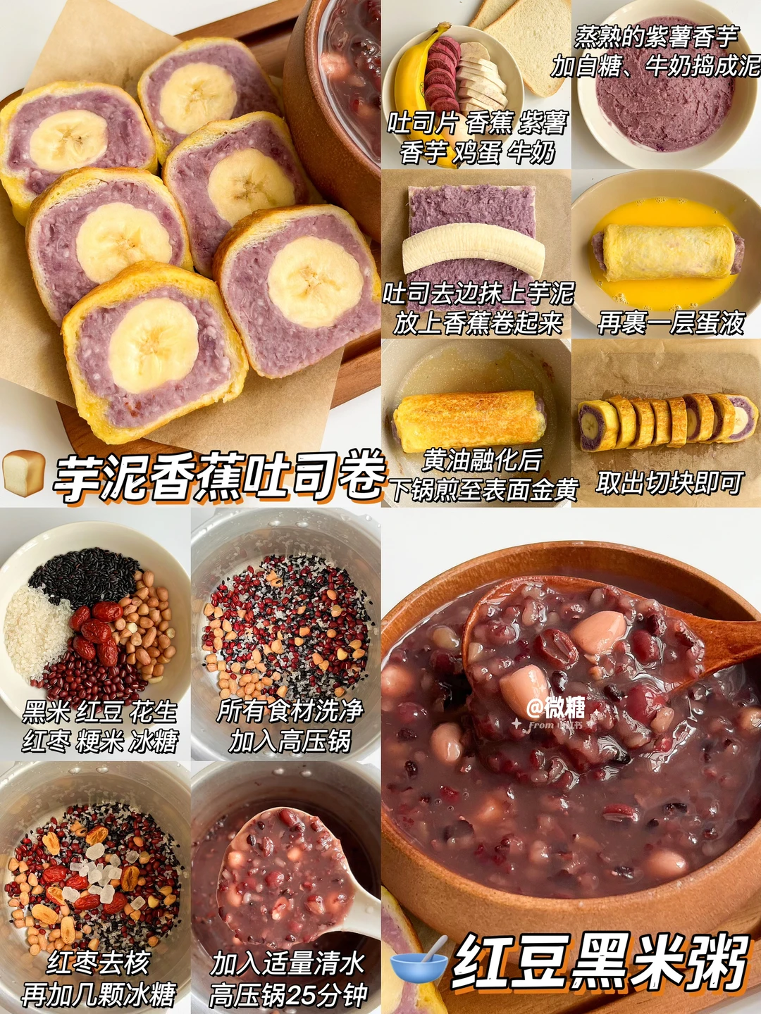 🥣芋泥香蕉卷➕红枣黑米粥