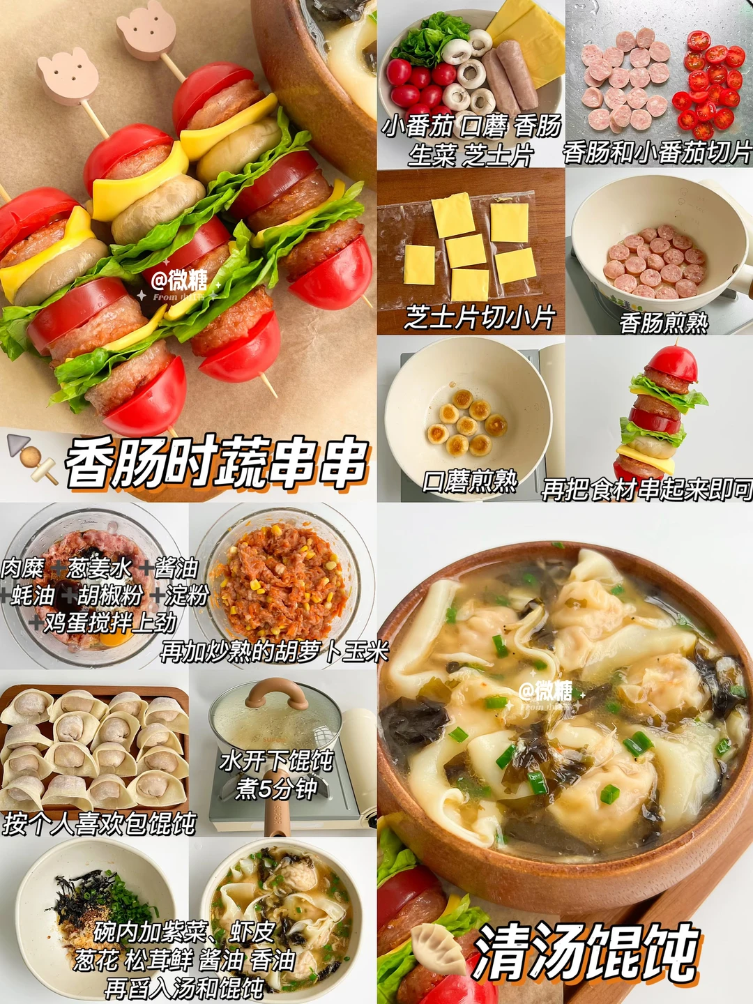 🥣香肠时蔬串串➕清汤小馄饨