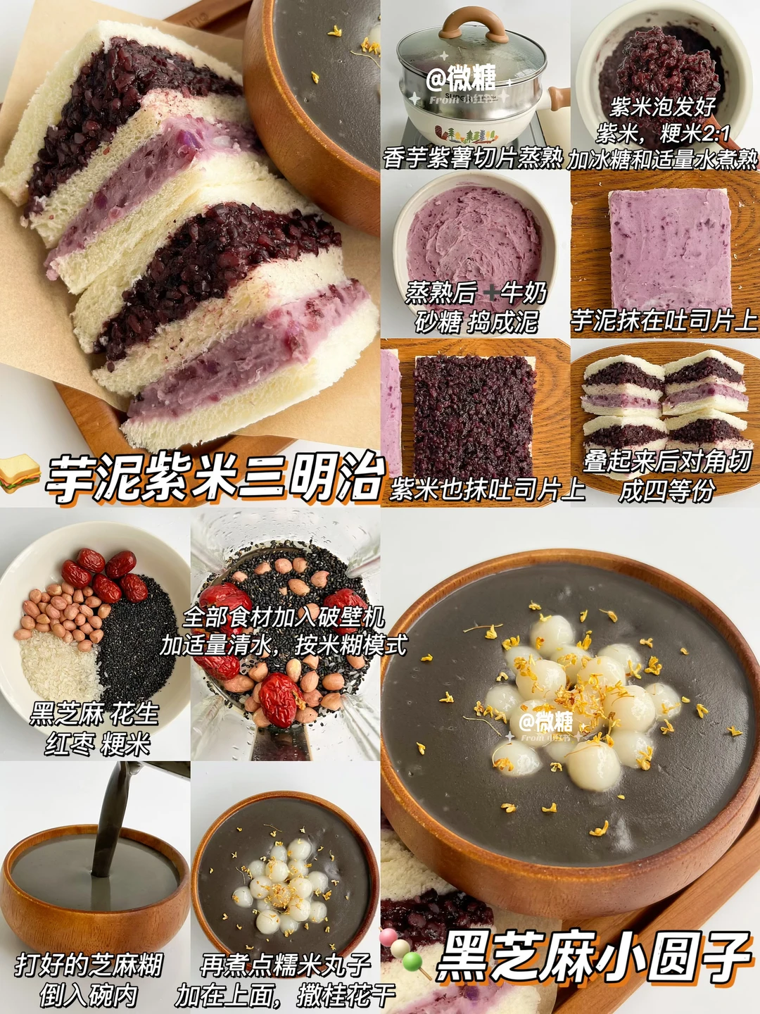 🥣紫米芋泥三明治➕黑芝麻小圆子