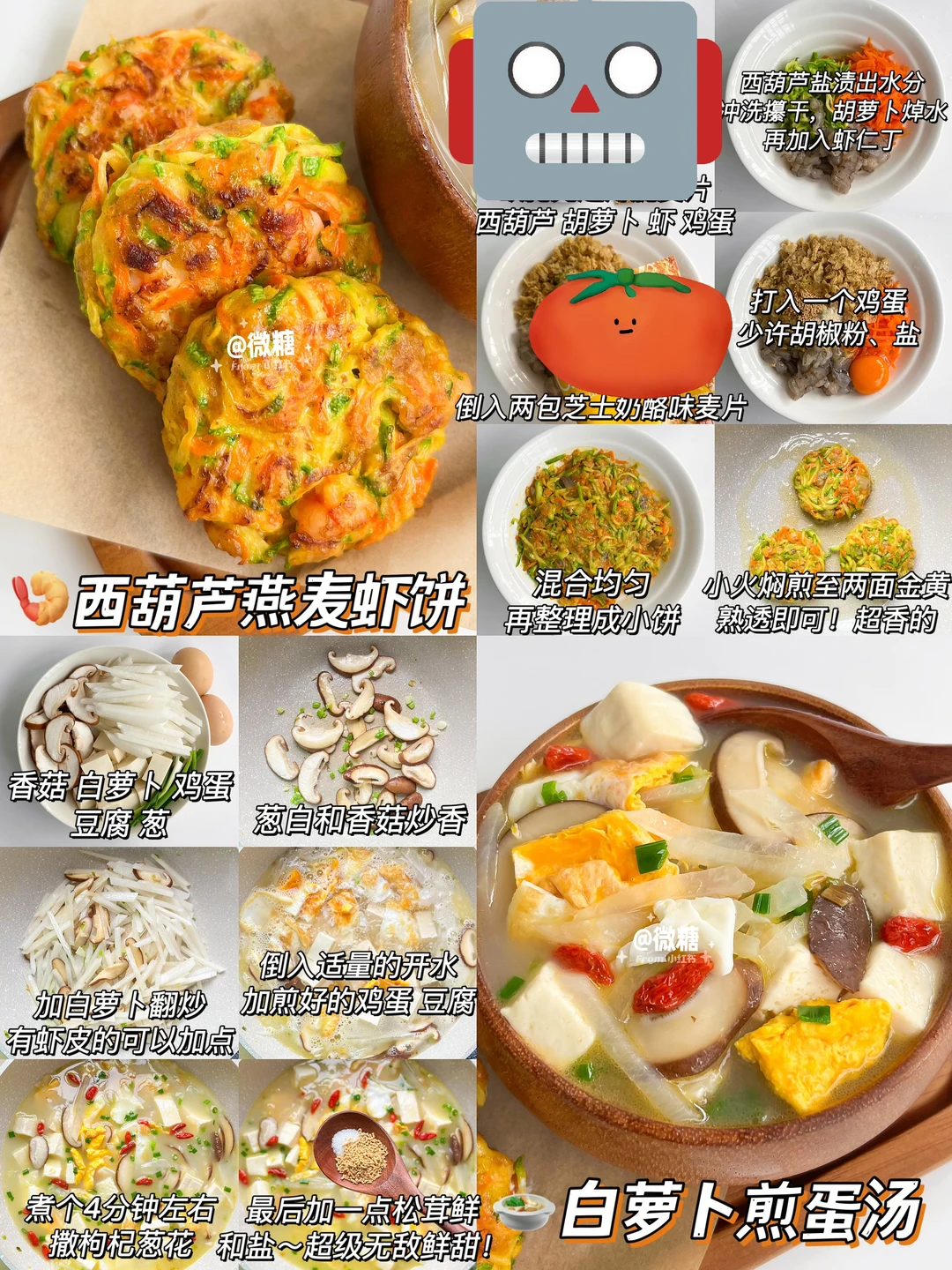 🥣西葫芦虾仁燕麦饼➕萝卜煎蛋汤
