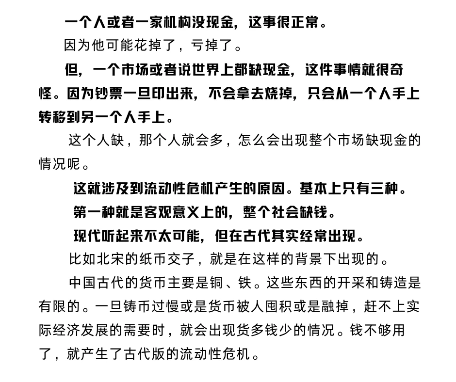 但,一个市场都缺现金,就很奇怪了。因为钞票一旦印出来,又不会烧掉。怎么会整个市场缺呢?